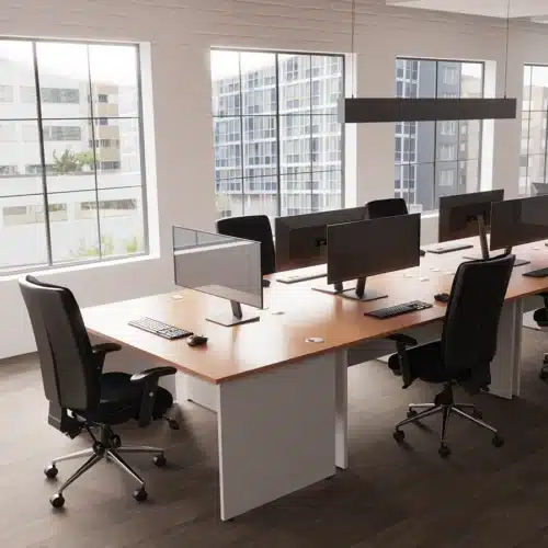 Maximise efficiency with our back to back height adjustable desks. Ideal for collaborative workspaces, these desks promote ergonomic benefits and flexibility, allowing multiple users to adjust their working height individually.