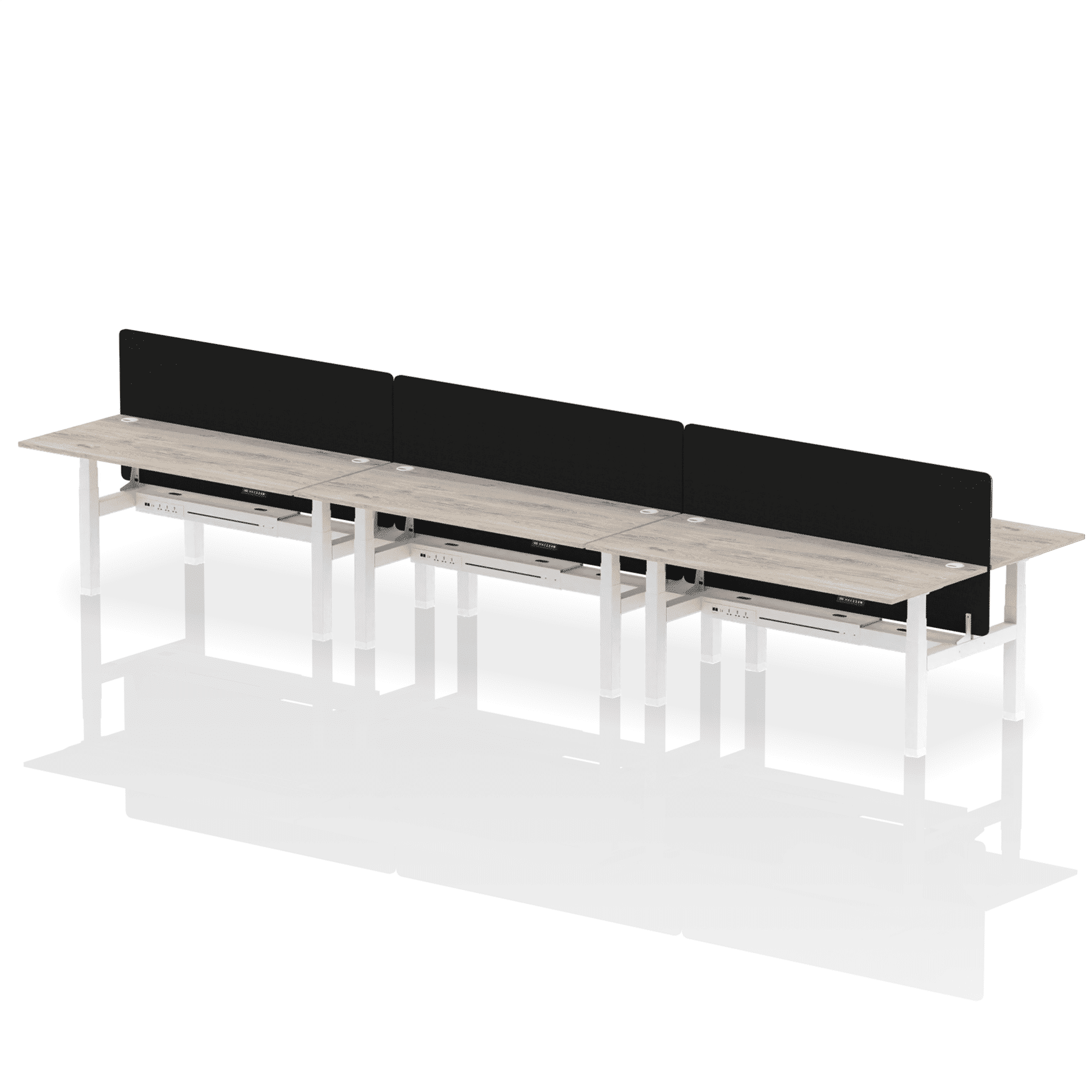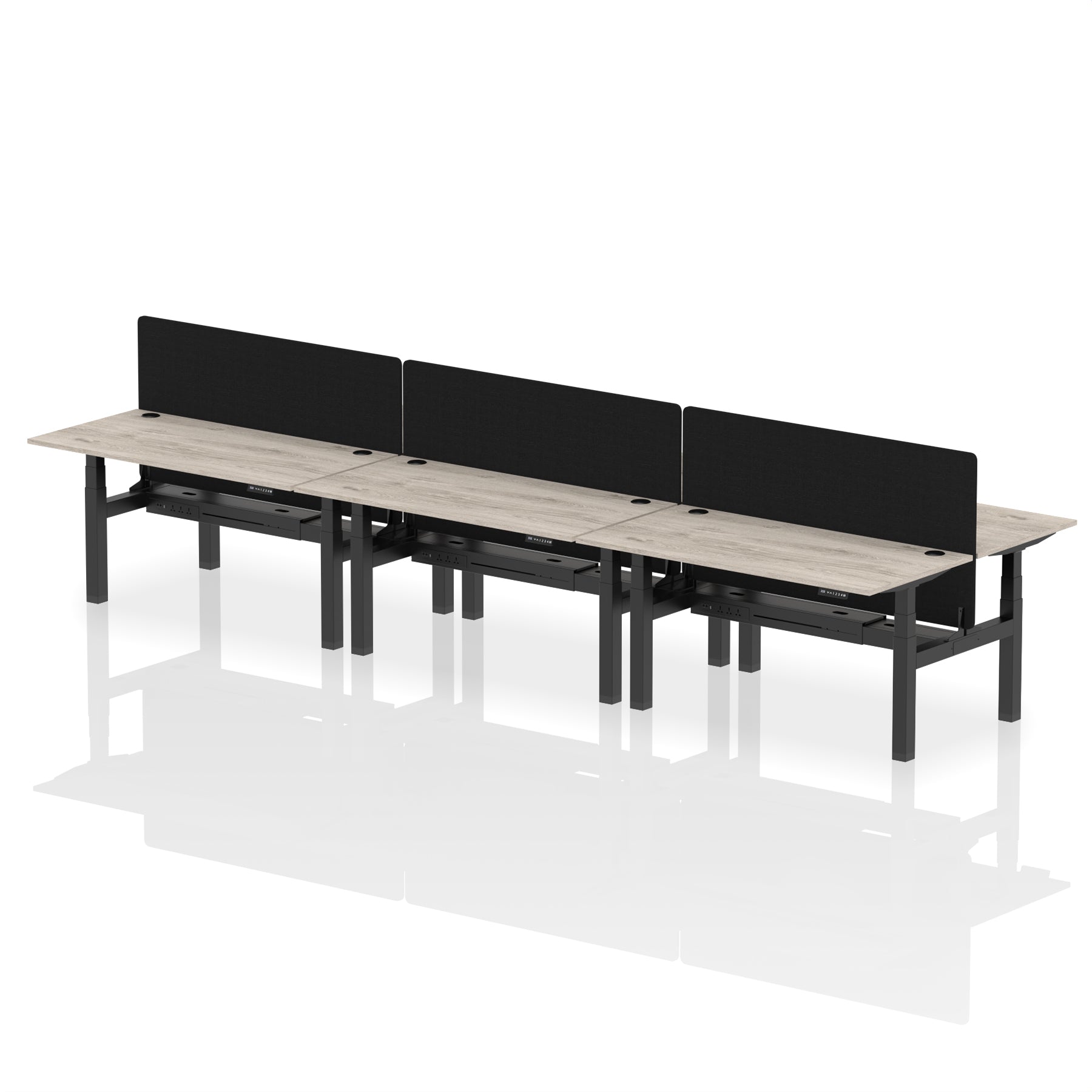 Air Back-to-Back Height Adjustable Bench Desk – 6 Person with Black Straight Screen