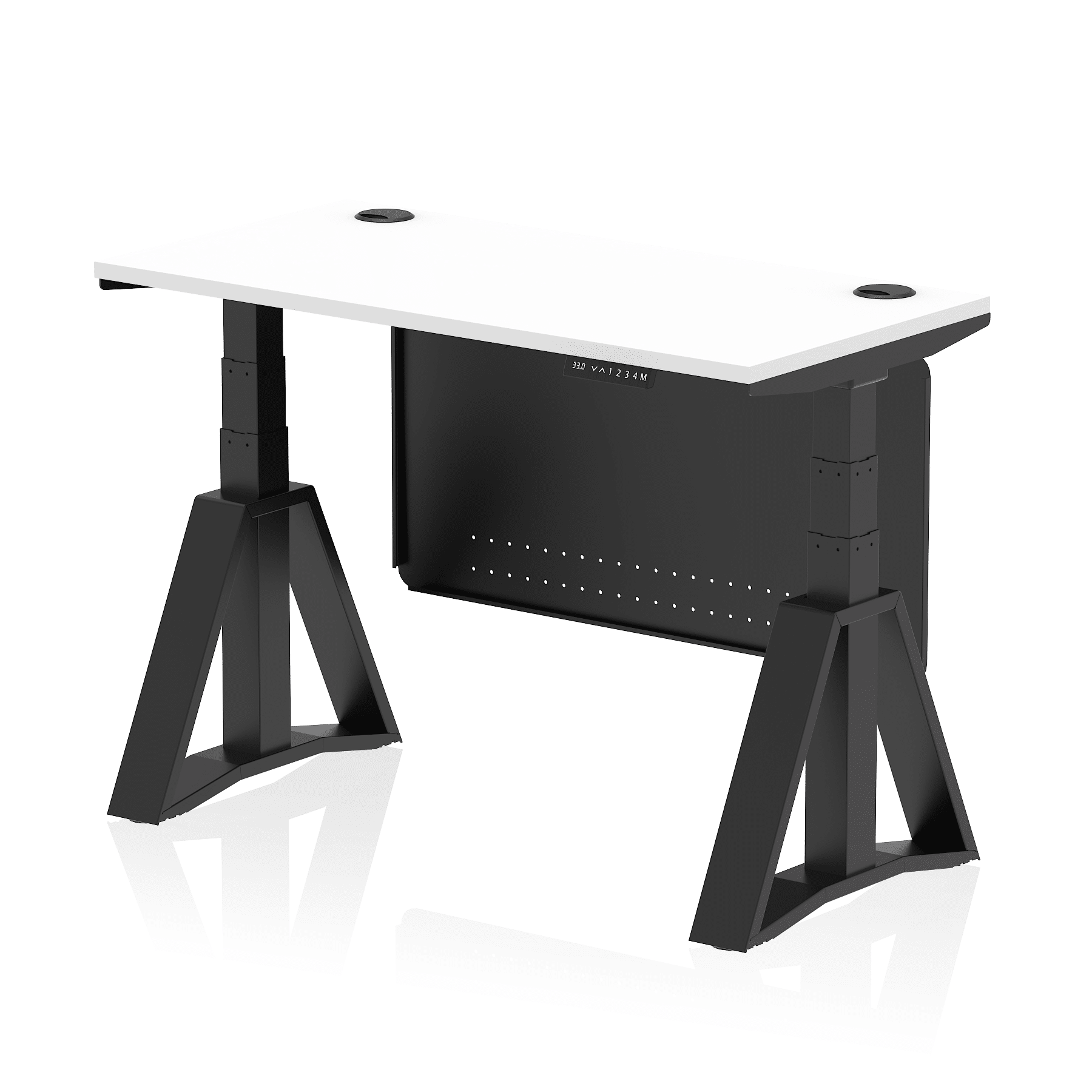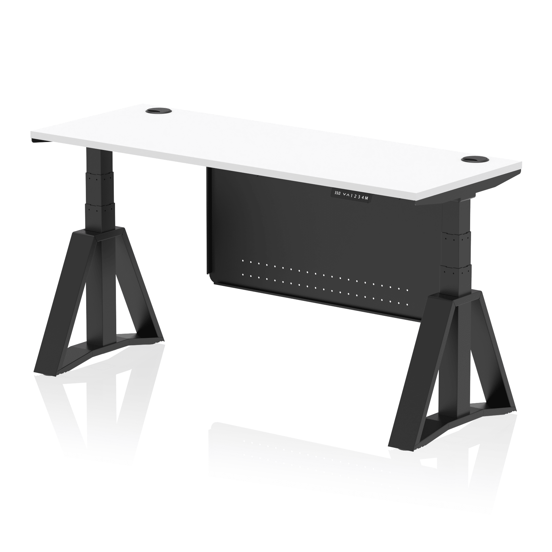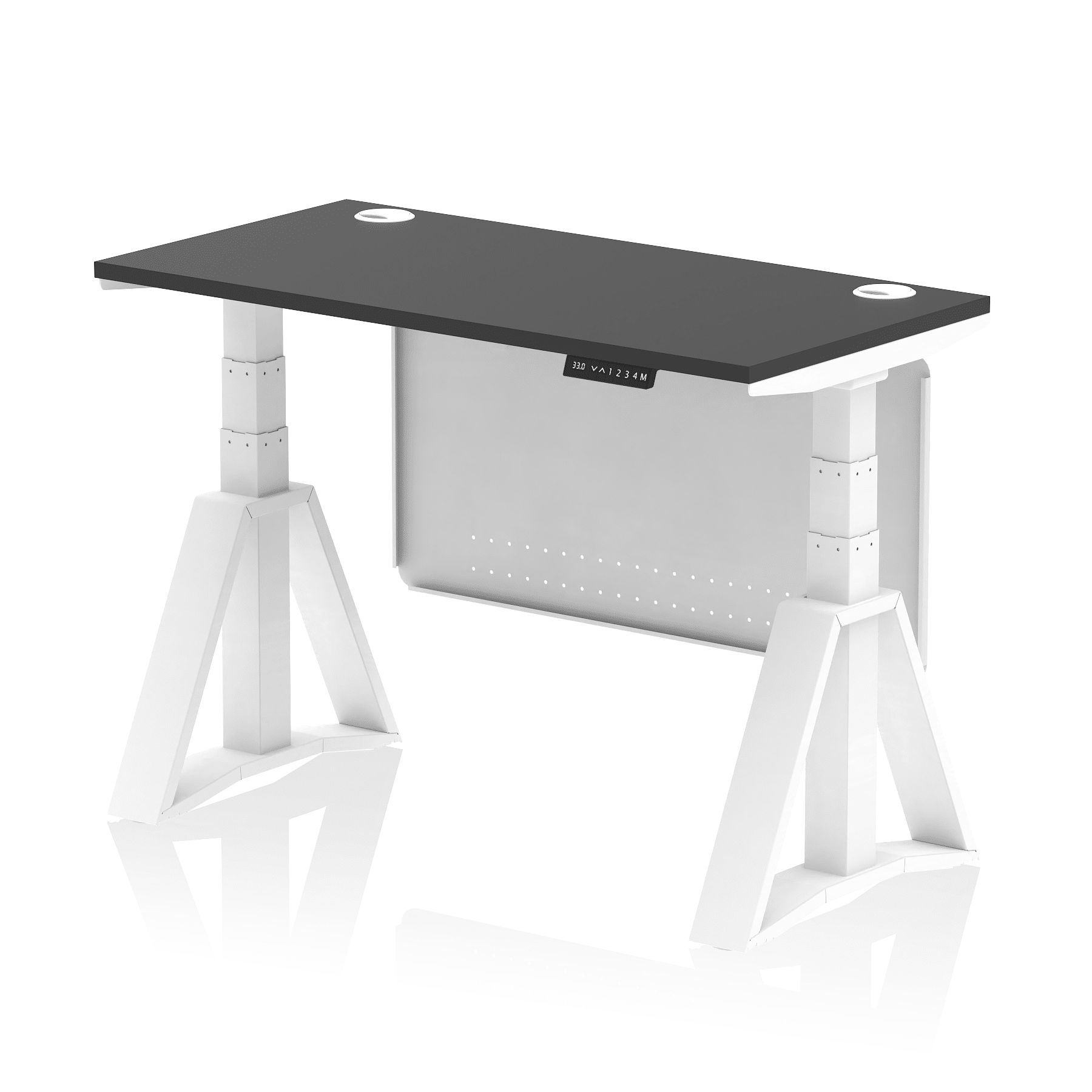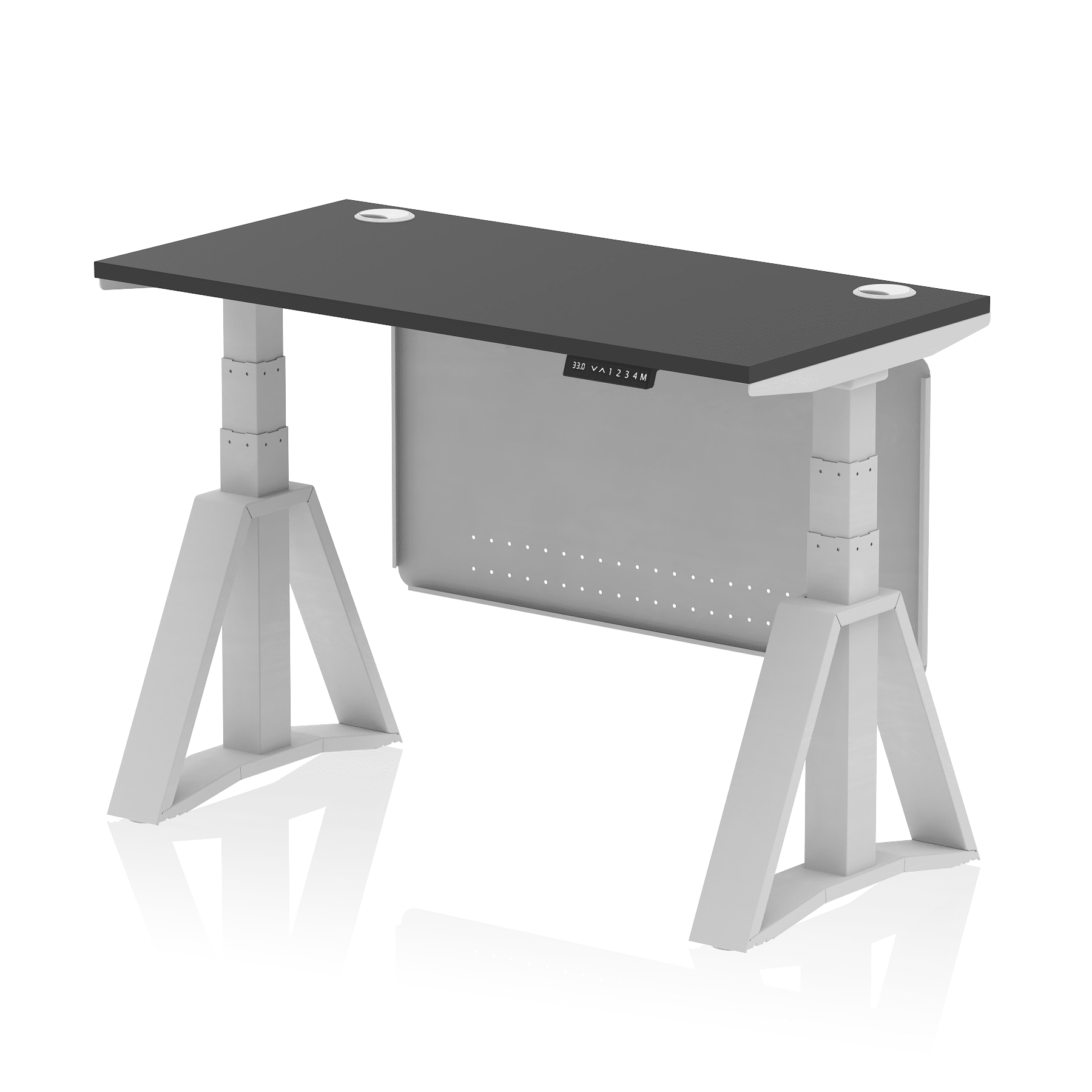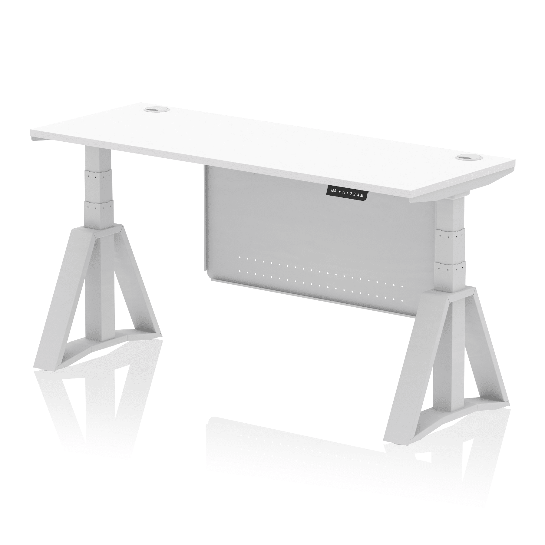 Be the first to review “Air Height Adjustable Slimline Desk With Cable Ports With Steel Modesty Panel With Piste Foot”