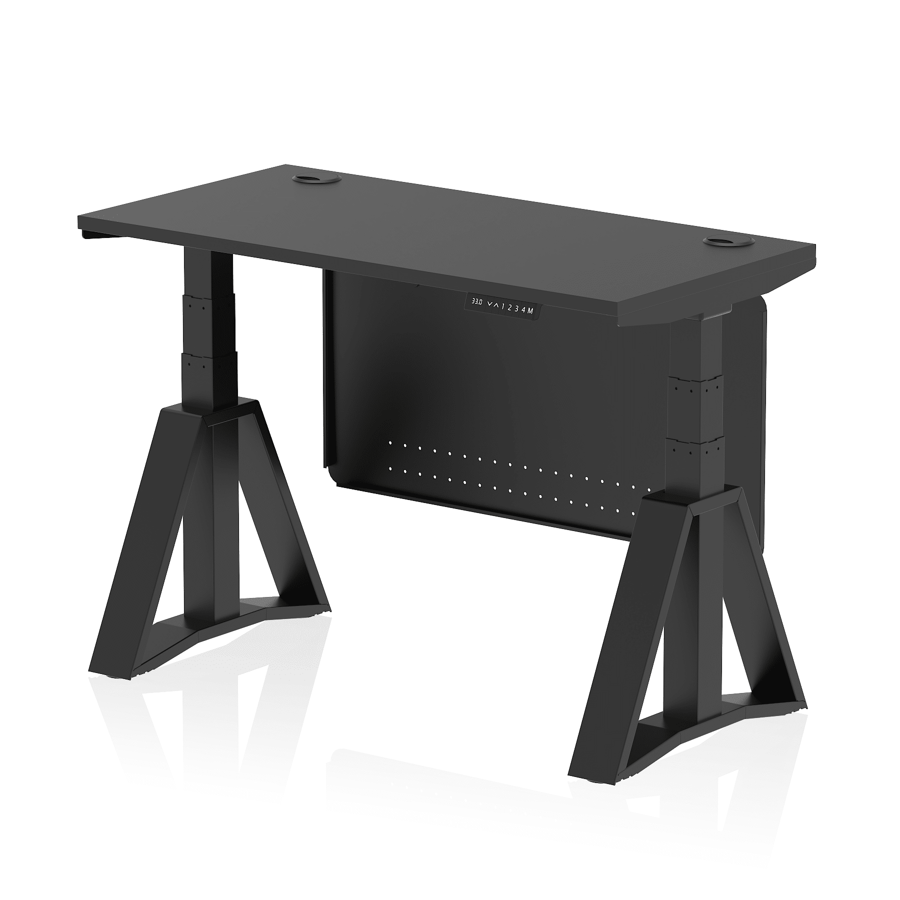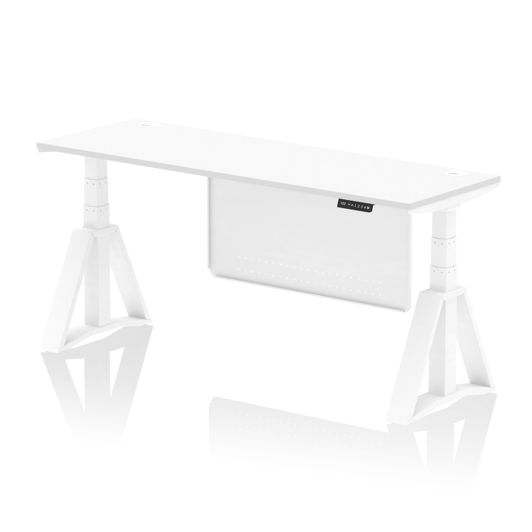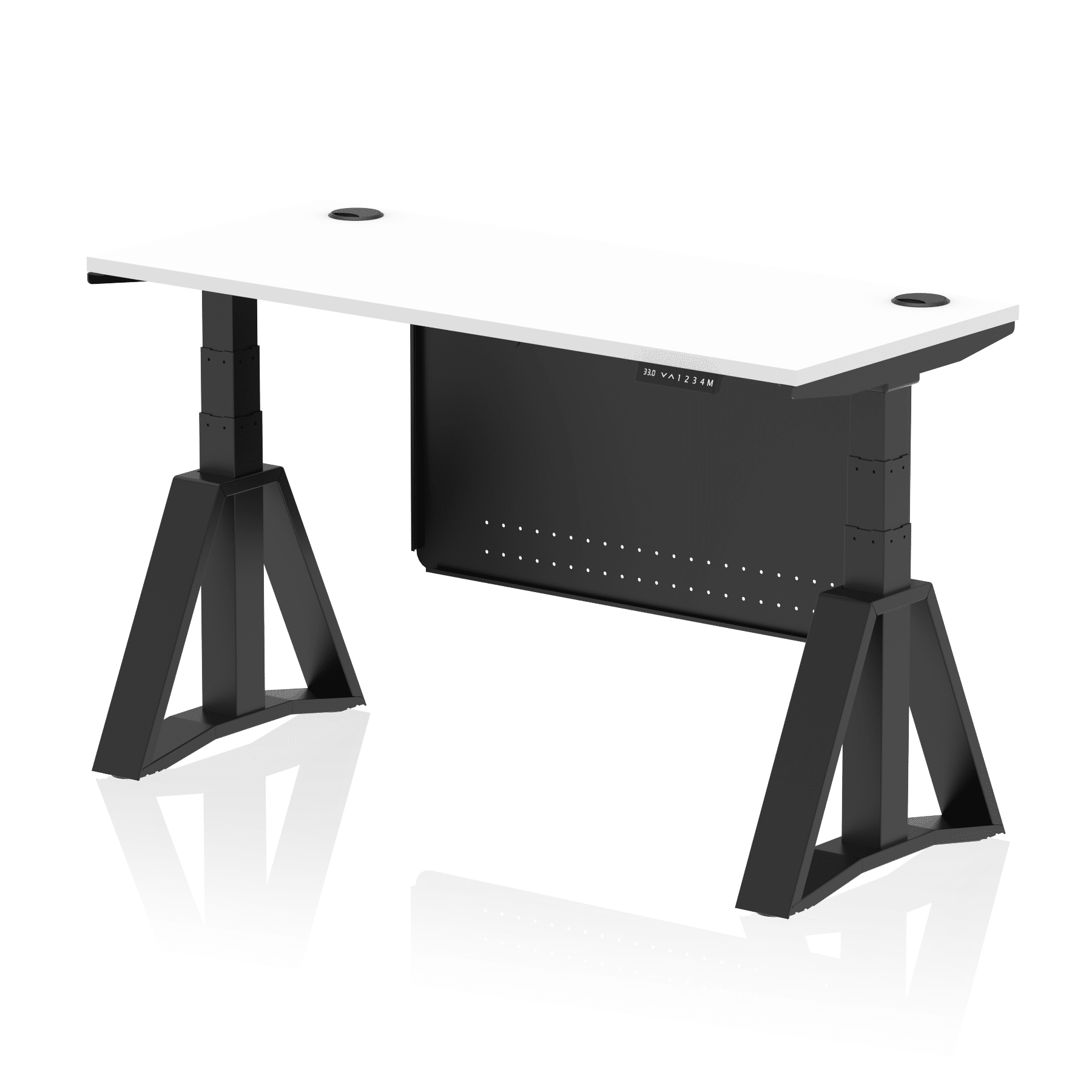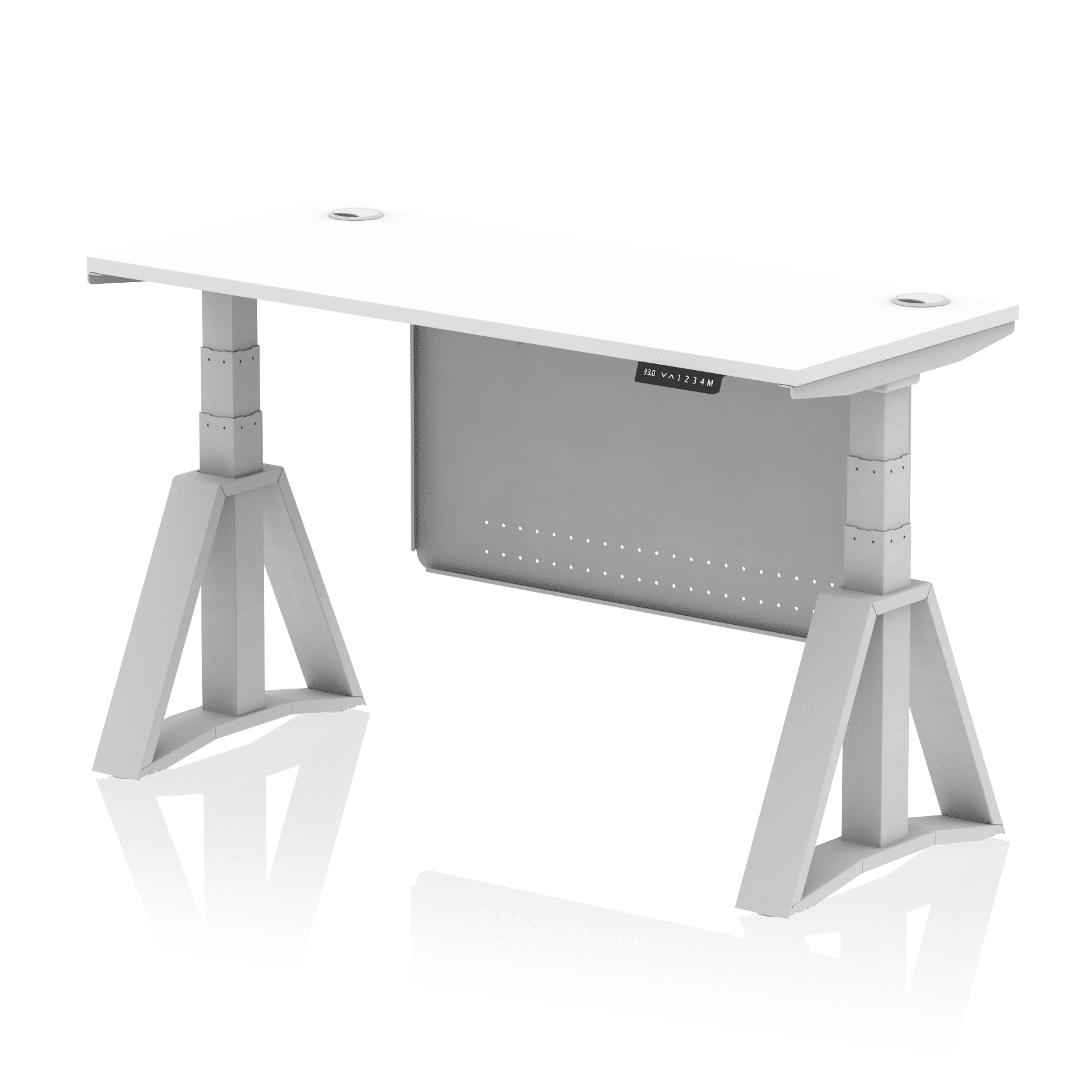 Be the first to review “Air Height Adjustable Slimline Desk With Cable Ports With Steel Modesty Panel With Piste Foot”
