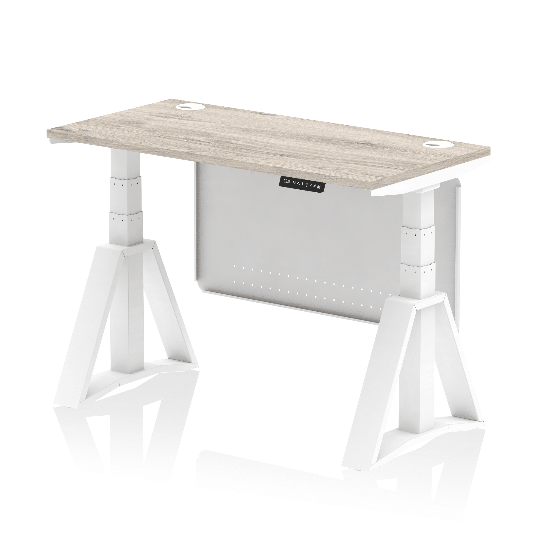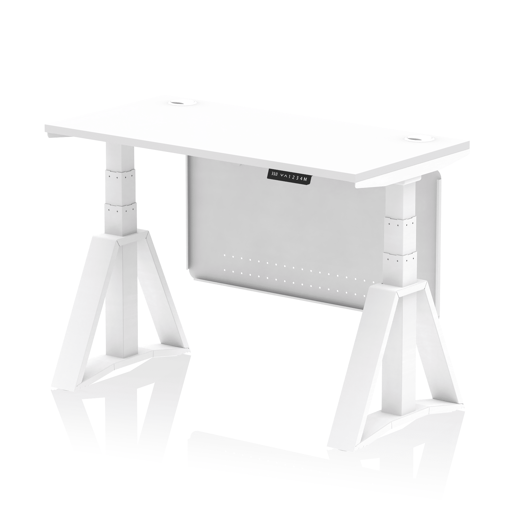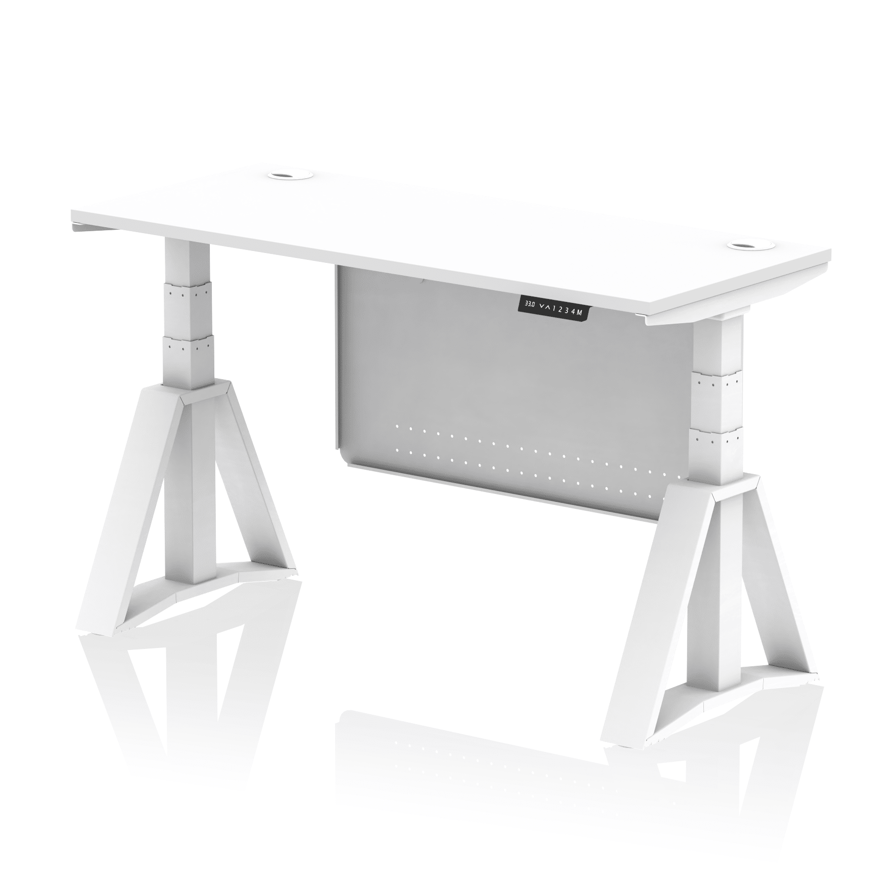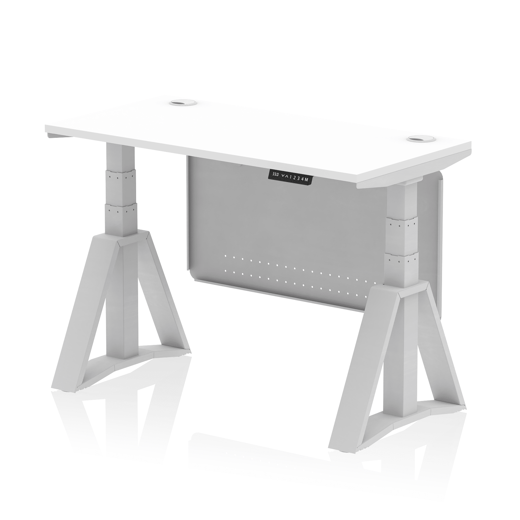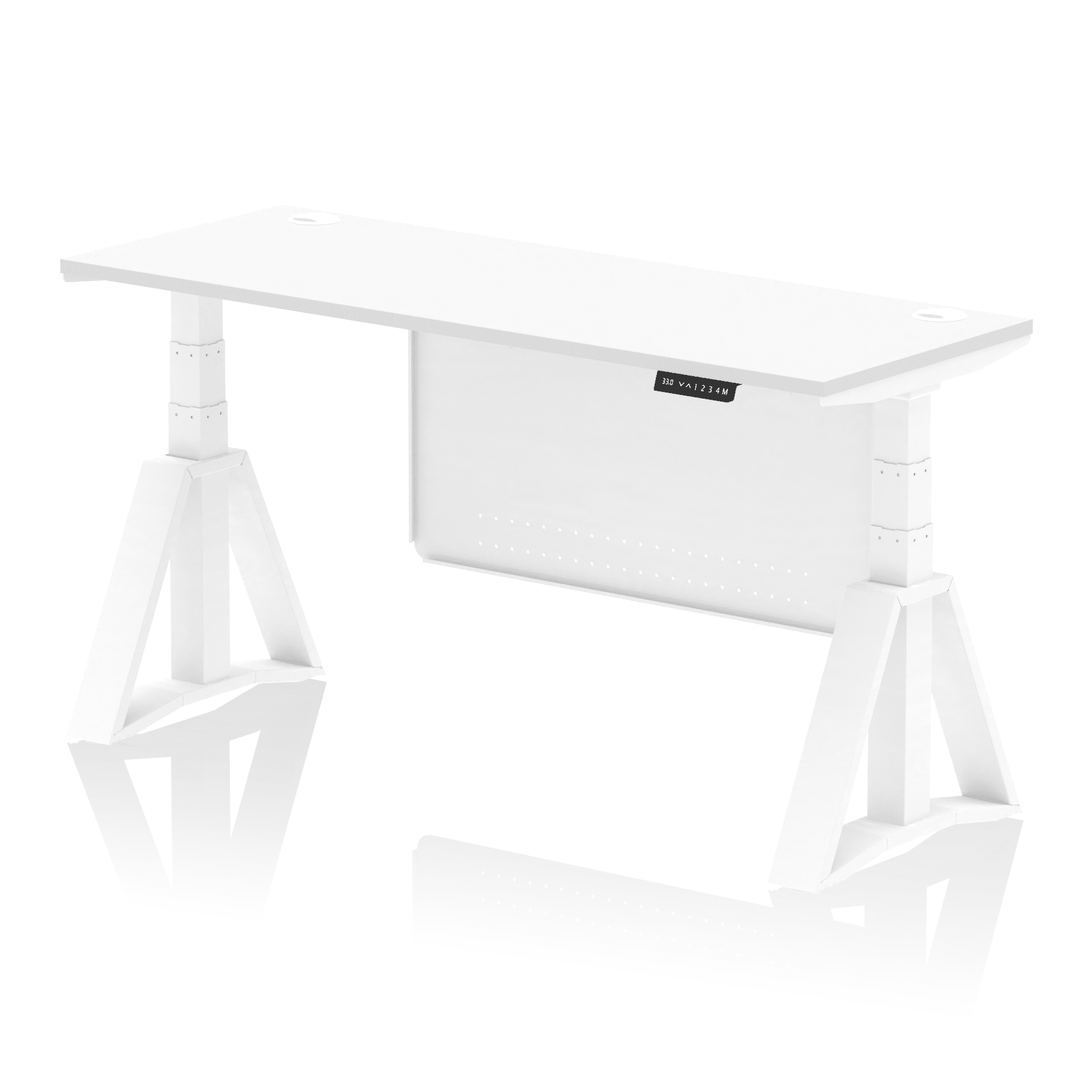 Be the first to review “Air Height Adjustable Slimline Desk With Cable Ports With Steel Modesty Panel With Piste Foot”