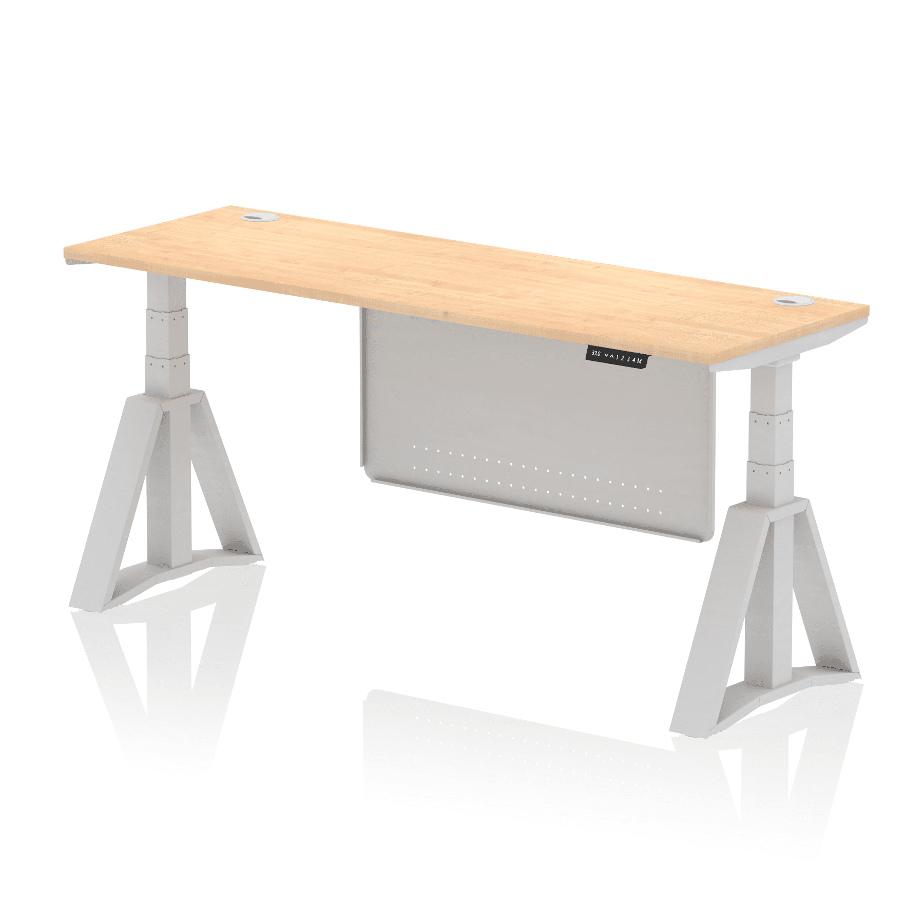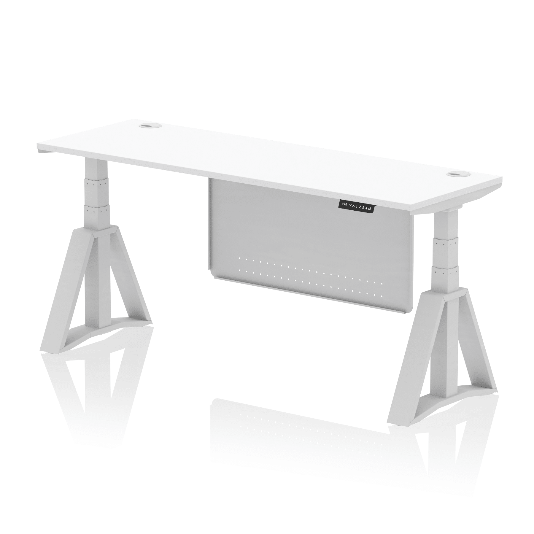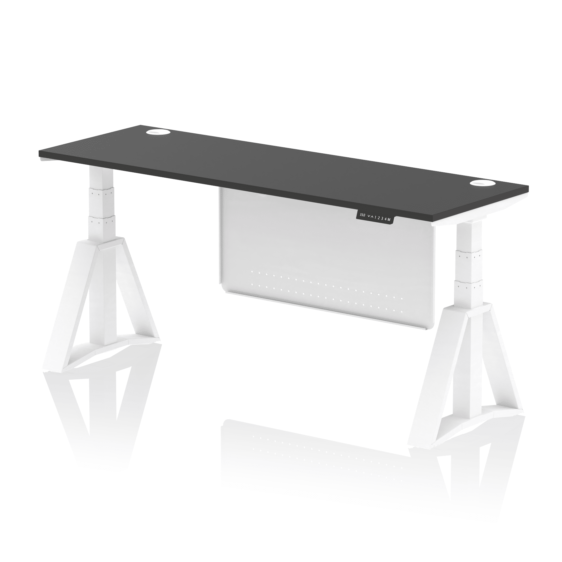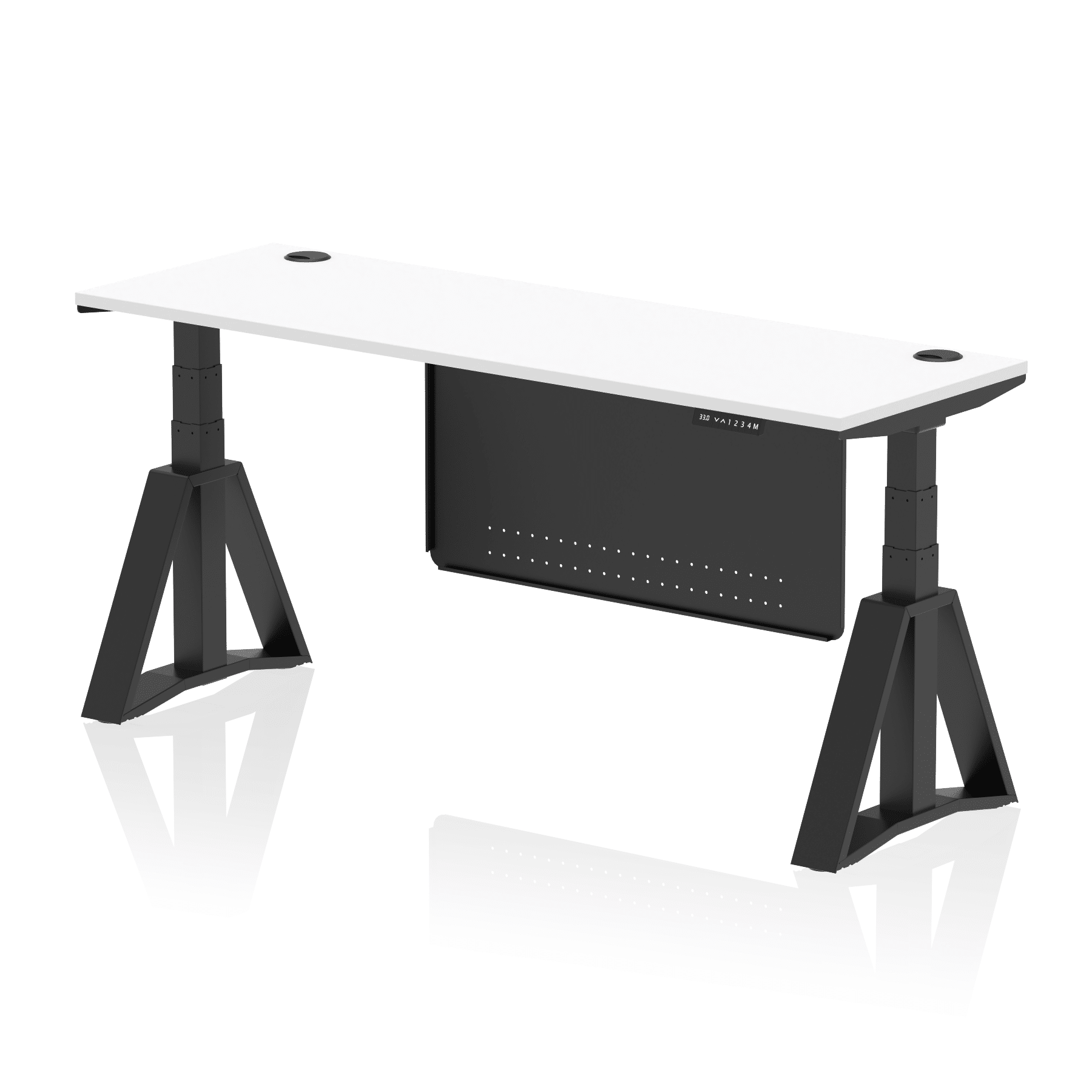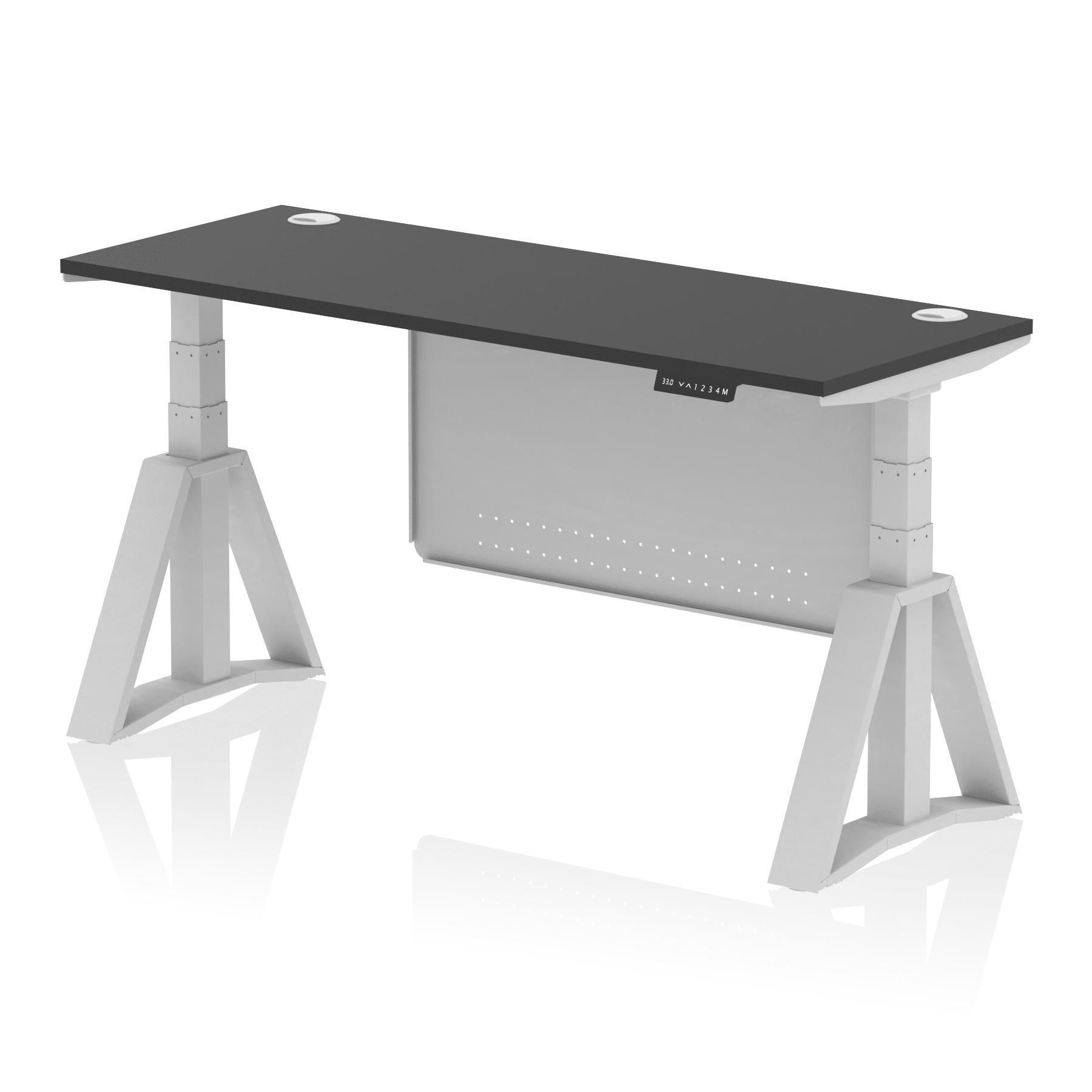 Air Height Adjustable Slimline Desk With Cable Ports With Steel Modesty Panel With Piste Foot