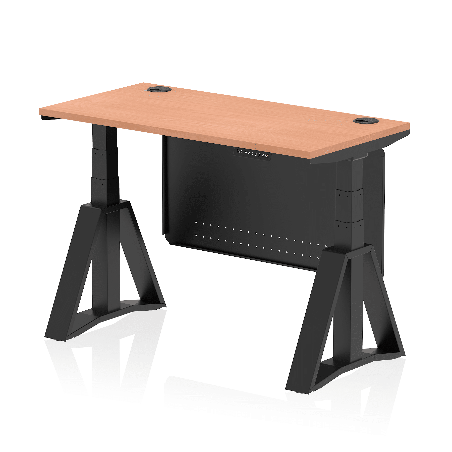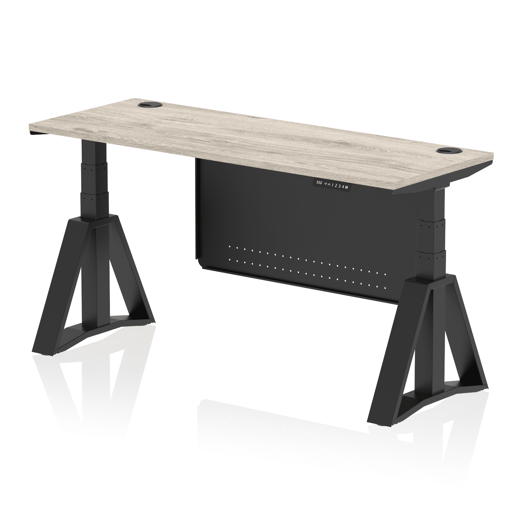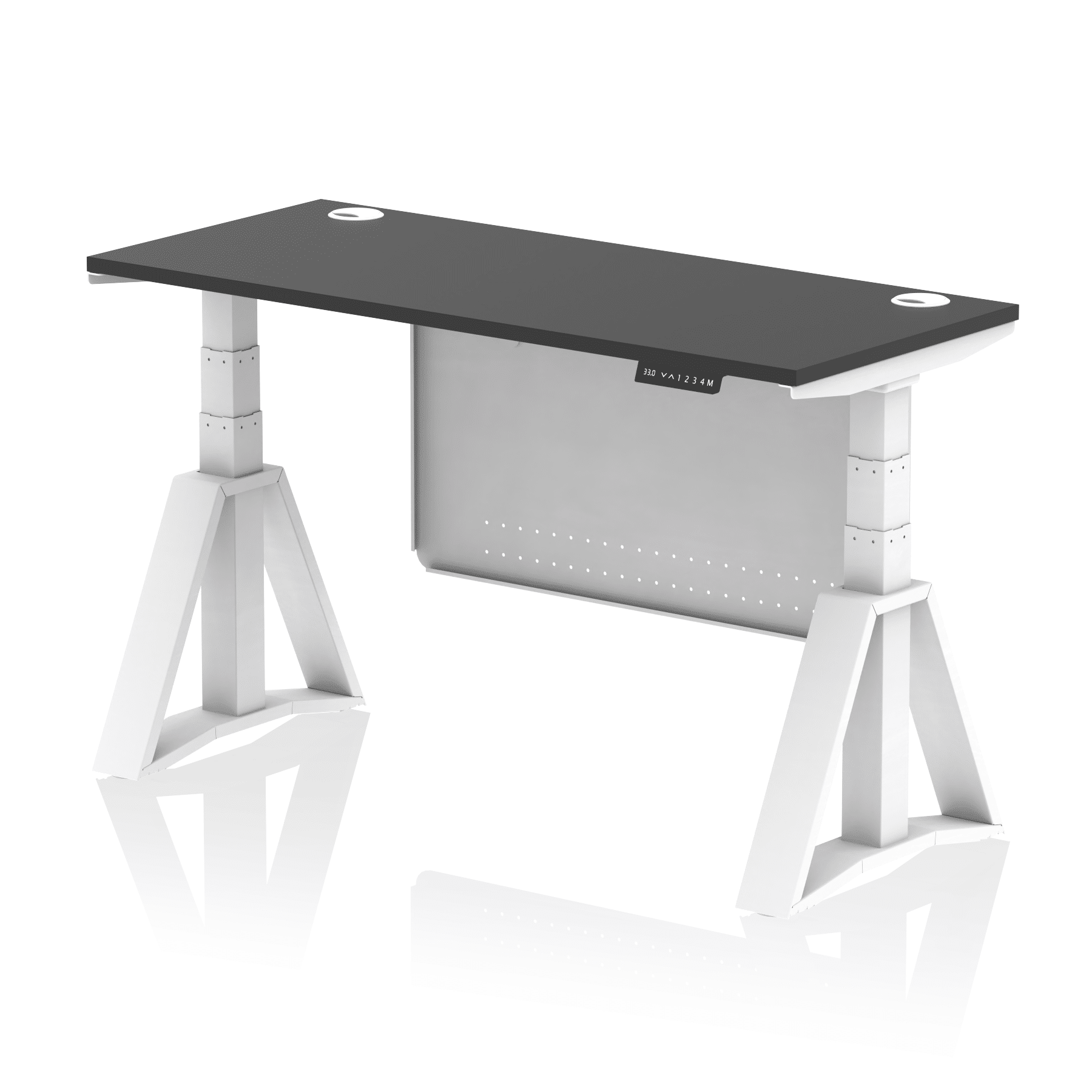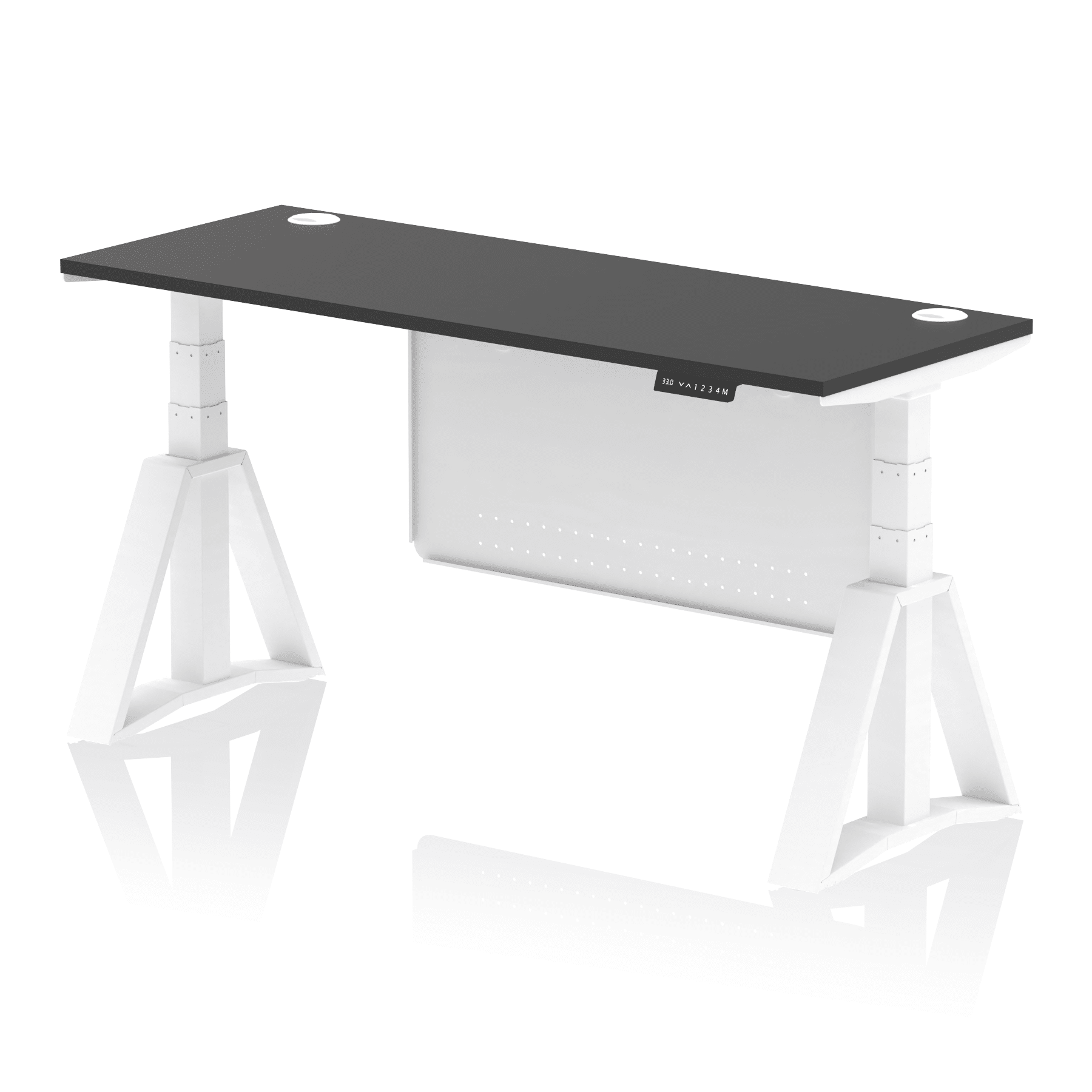 Air Height Adjustable Slimline Desk With Cable Ports With Steel Modesty Panel With Piste Foot