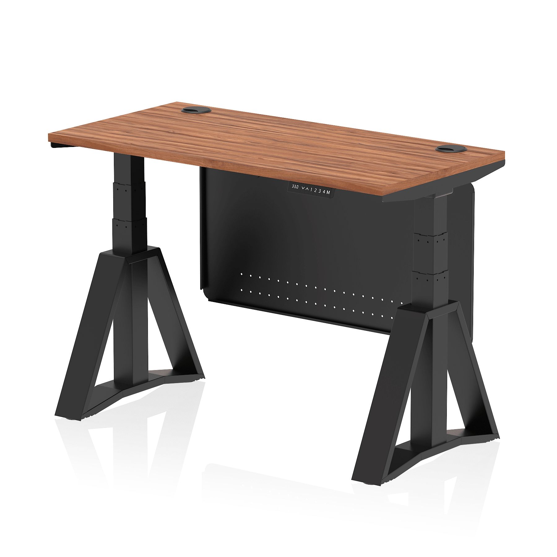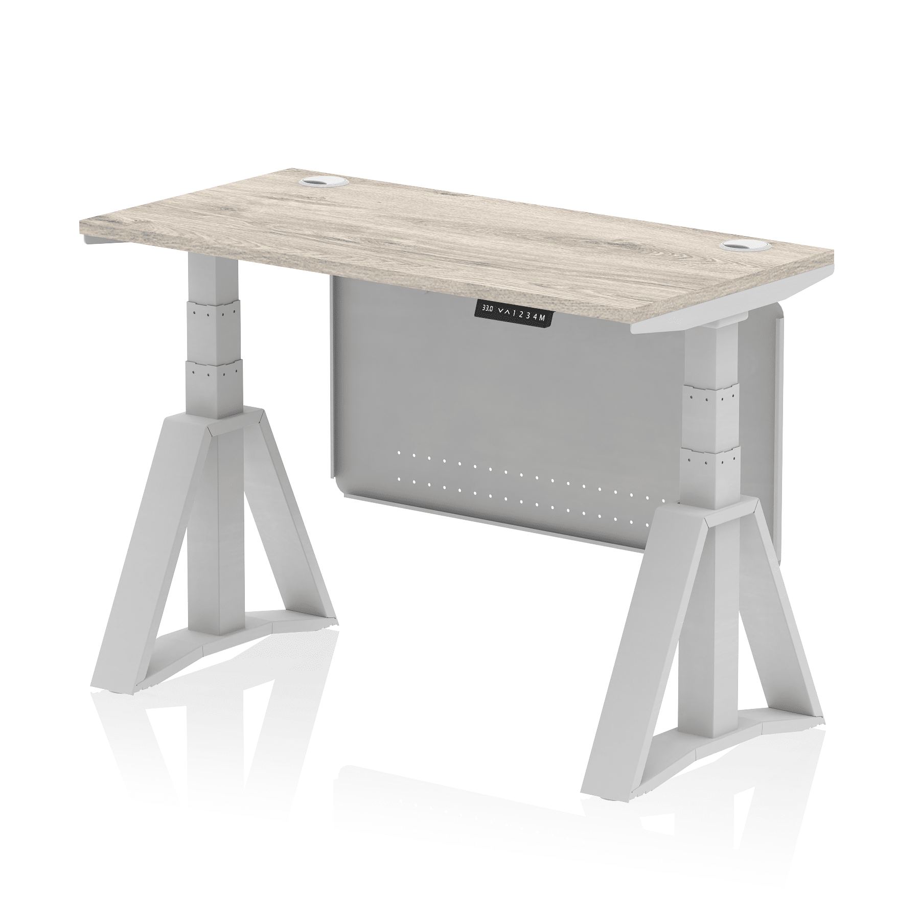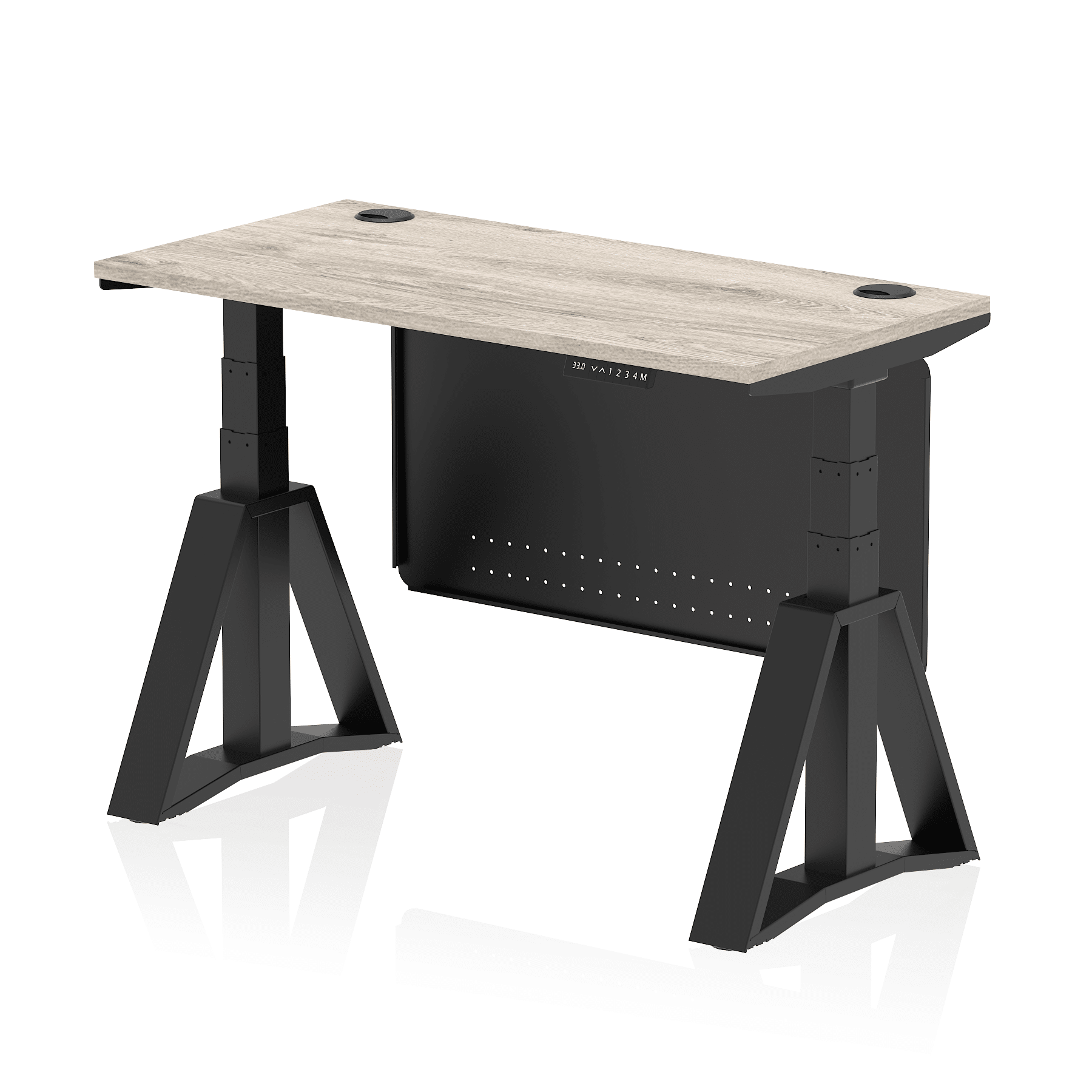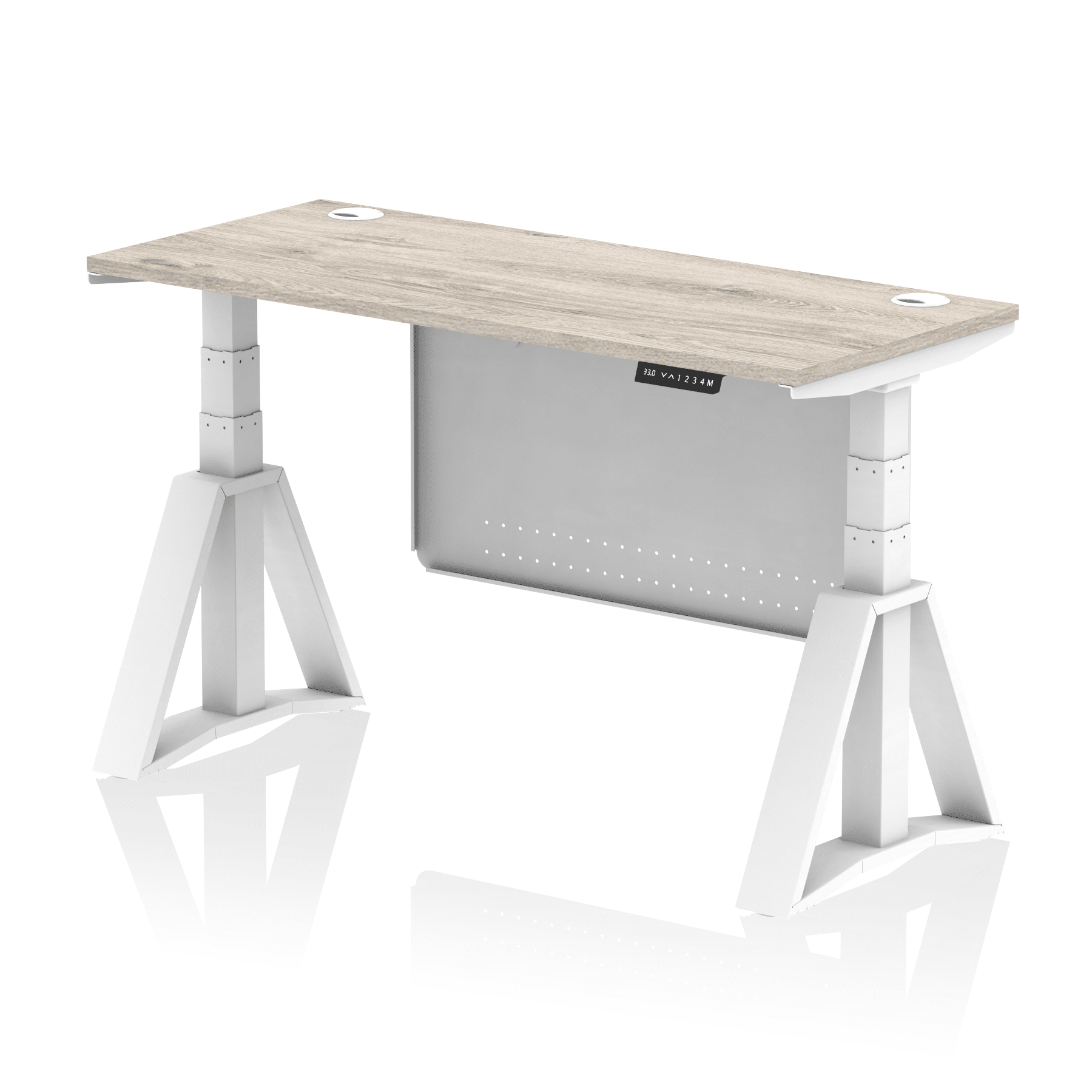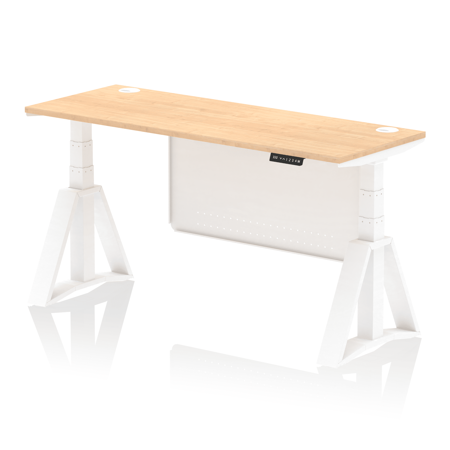 Air Height Adjustable Slimline Desk With Cable Ports With Steel Modesty Panel With Piste Foot