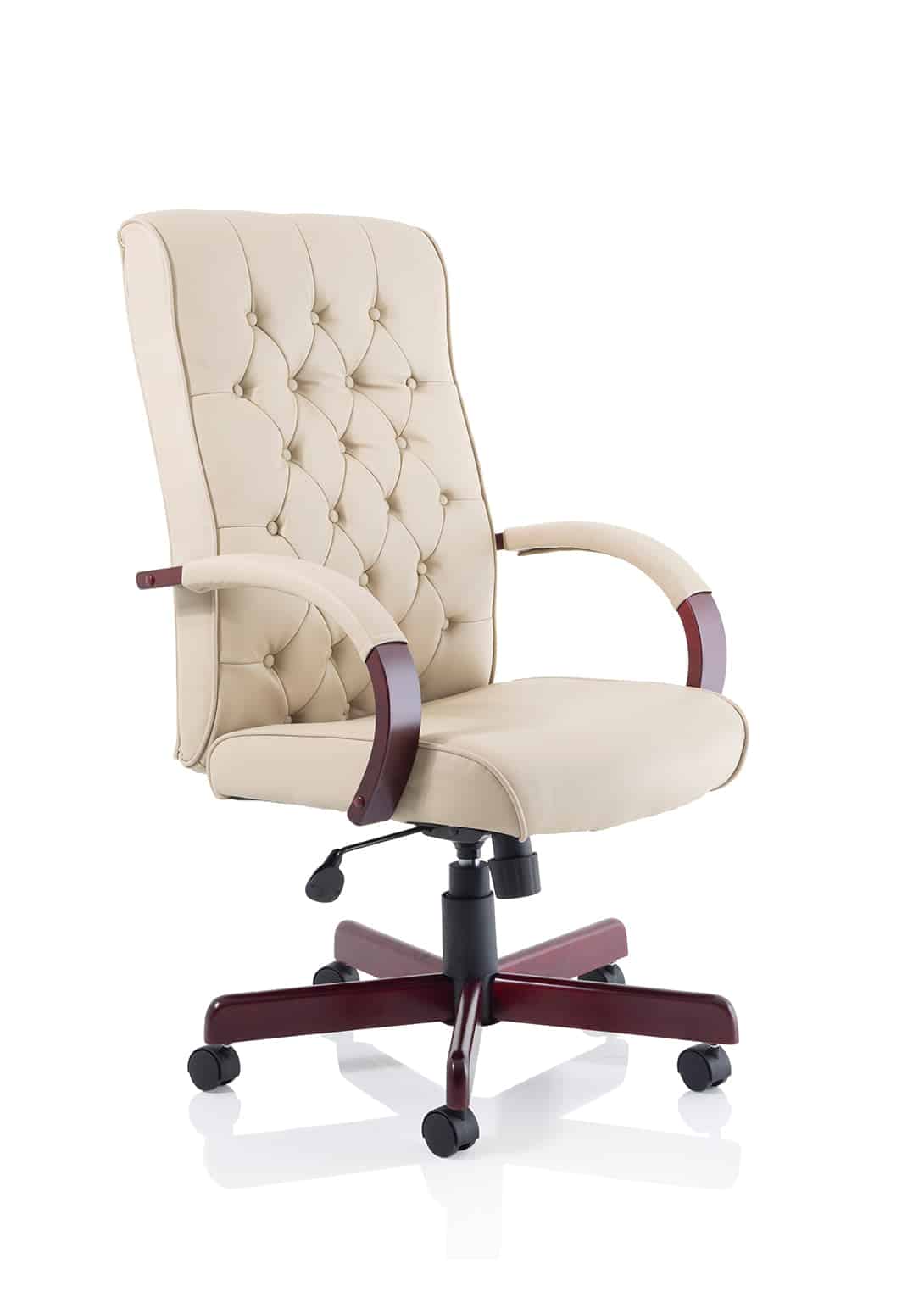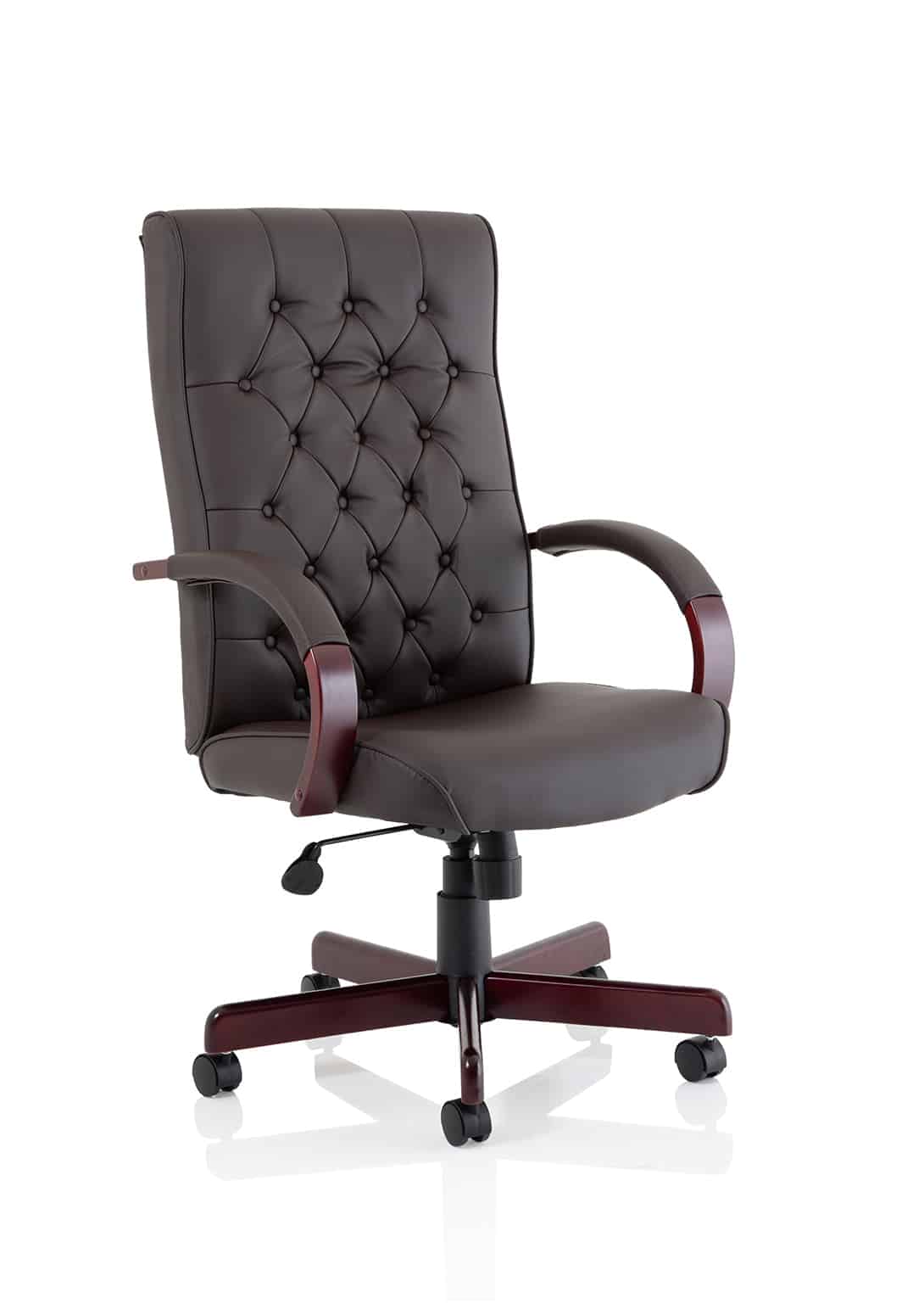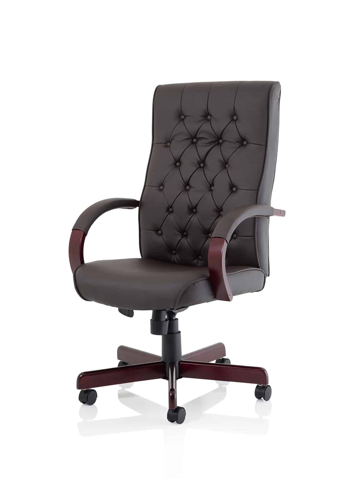 Chesterfield High Back Leather Executive Office Chair with Arms