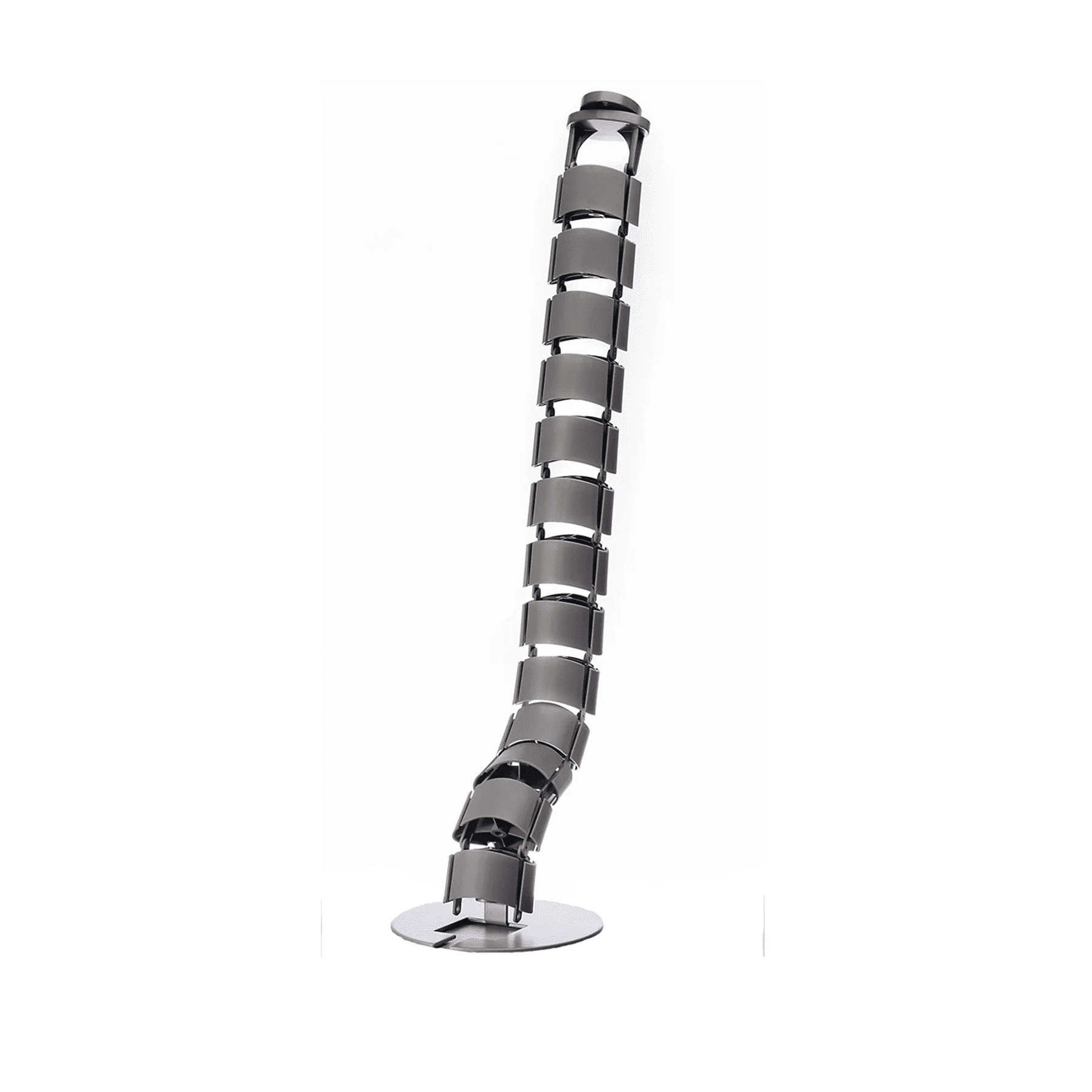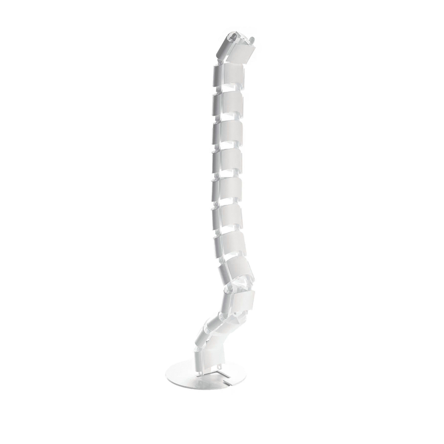Plastic umbilical style cable management spine | Accomodates multiples cables | Easy fixes to underside of desk | Weighted shoe anchors to the floor | Cables will easily fold in and out.