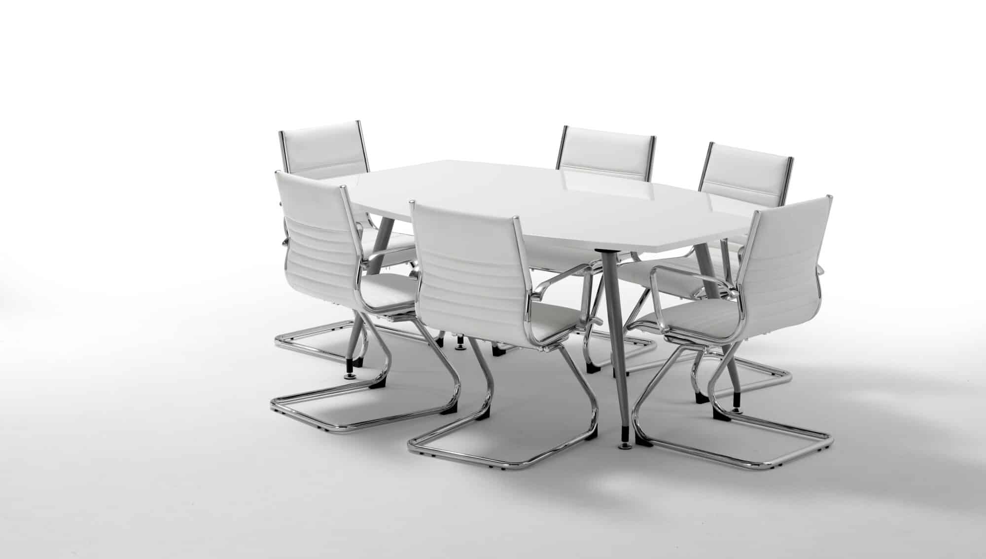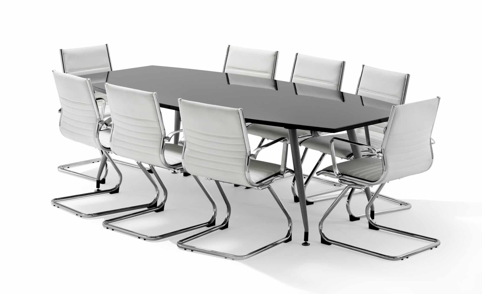 Elegant high gloss polished tops | Large seating area | Stylish tip to toe leg detail | Silver legs |Boat shaped for better team working | Height adjustments to feet | High sheen black finish