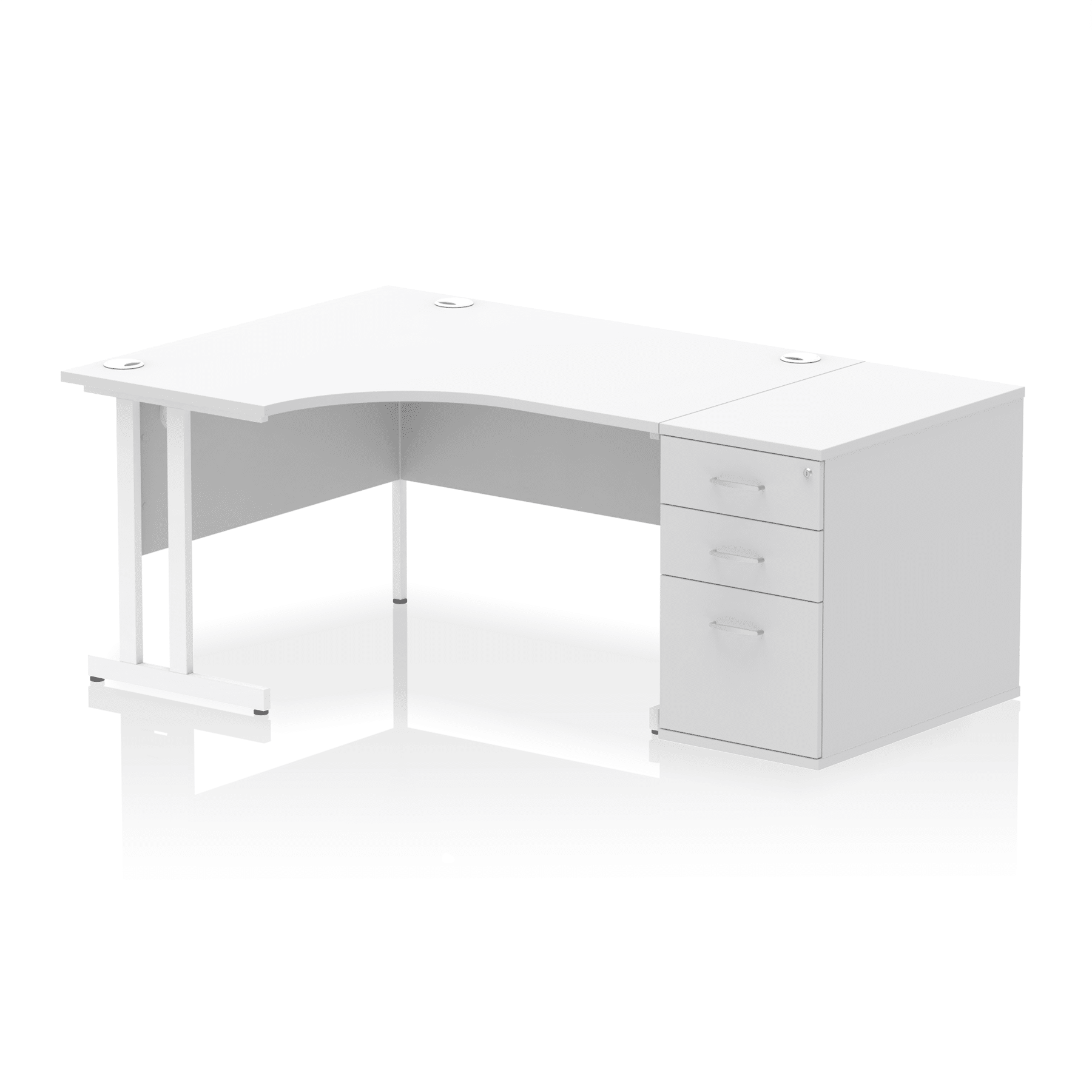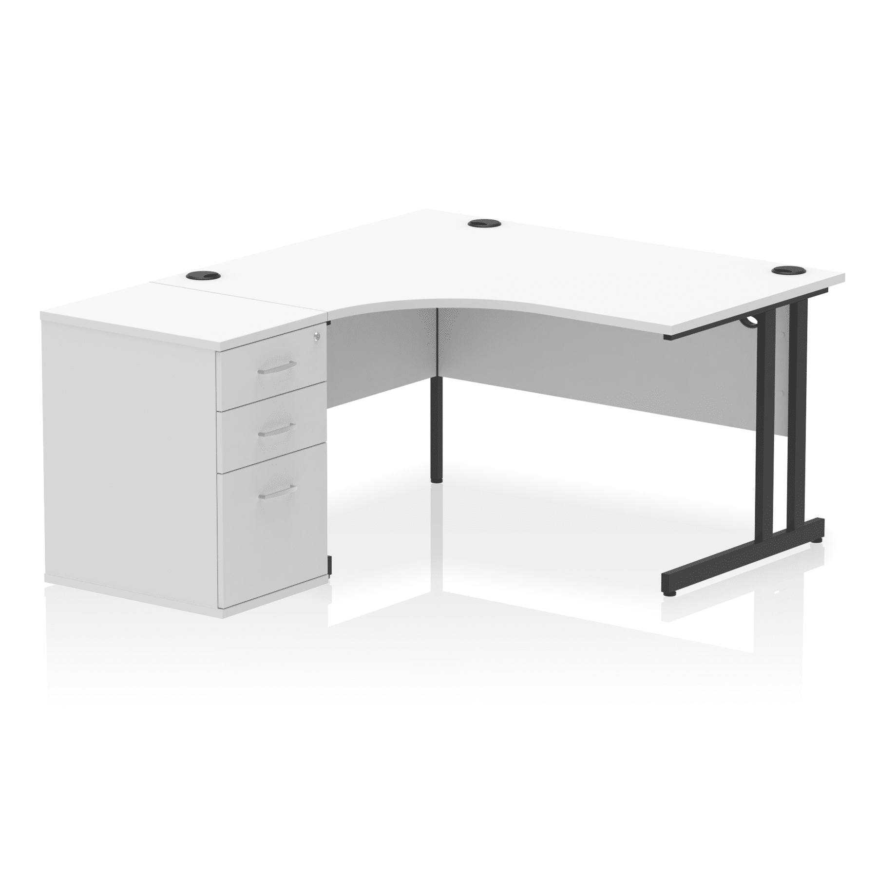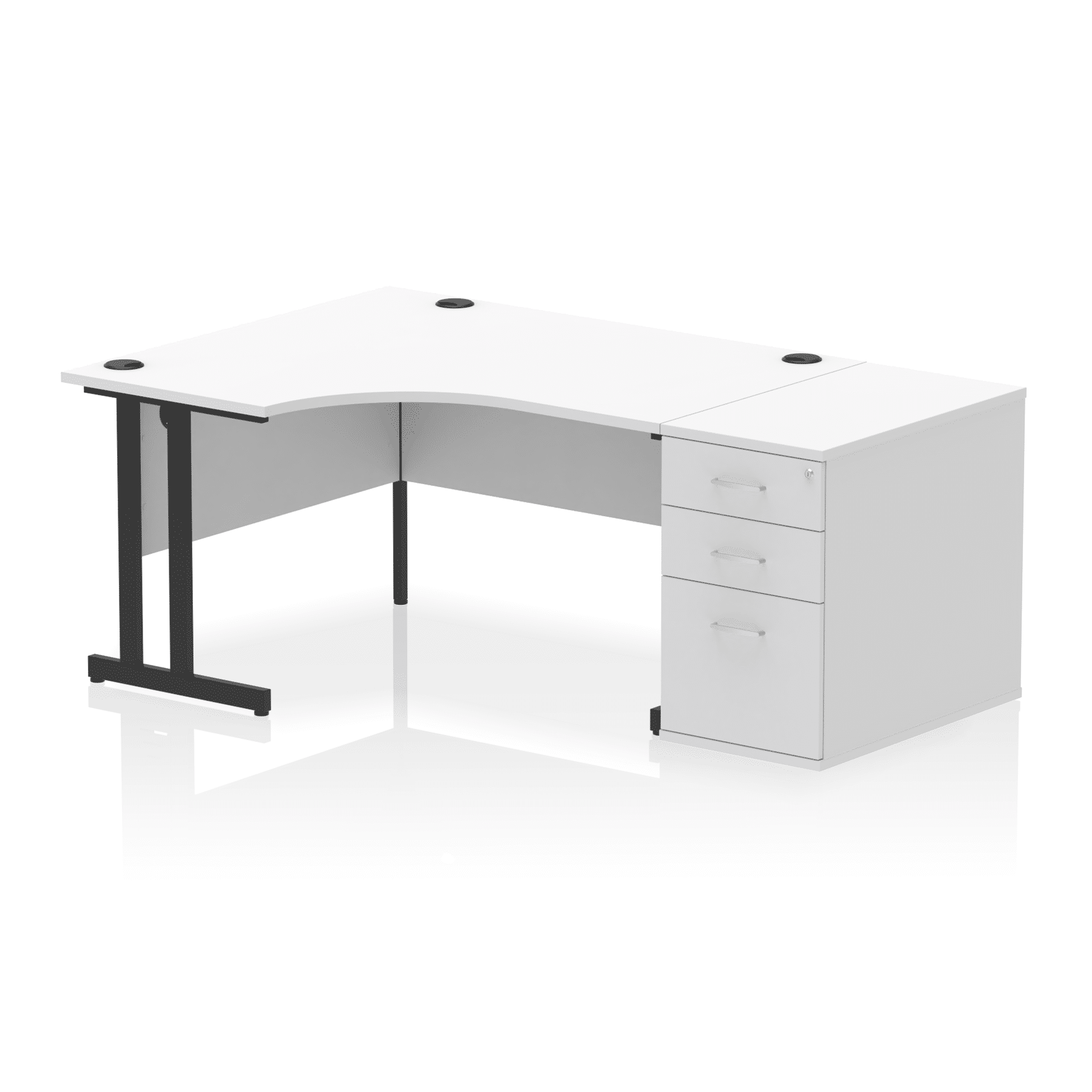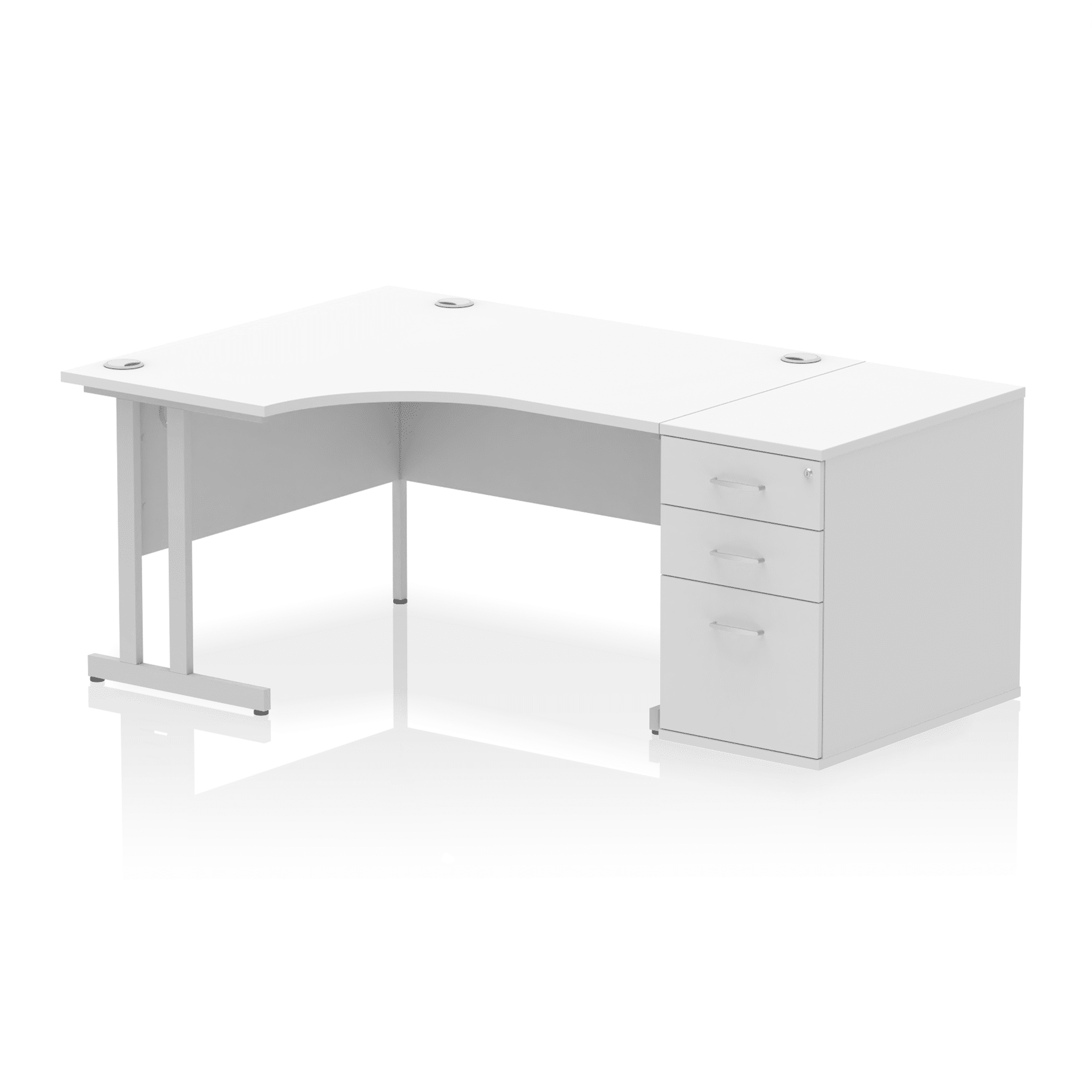 • Impulse contract 1400 wide desk • 25mm tops • Heat resistant melamine finish • 18mm modesty panels • 2mm protective abs edging • Cable managed legs • 2 cable ports • Height adjustable feet • Steel to steel fixings • 2 modesty panels slots • Deep set modesty panel (5″) allows for compatibility of most screen clamp fittings • Fixed pedestal