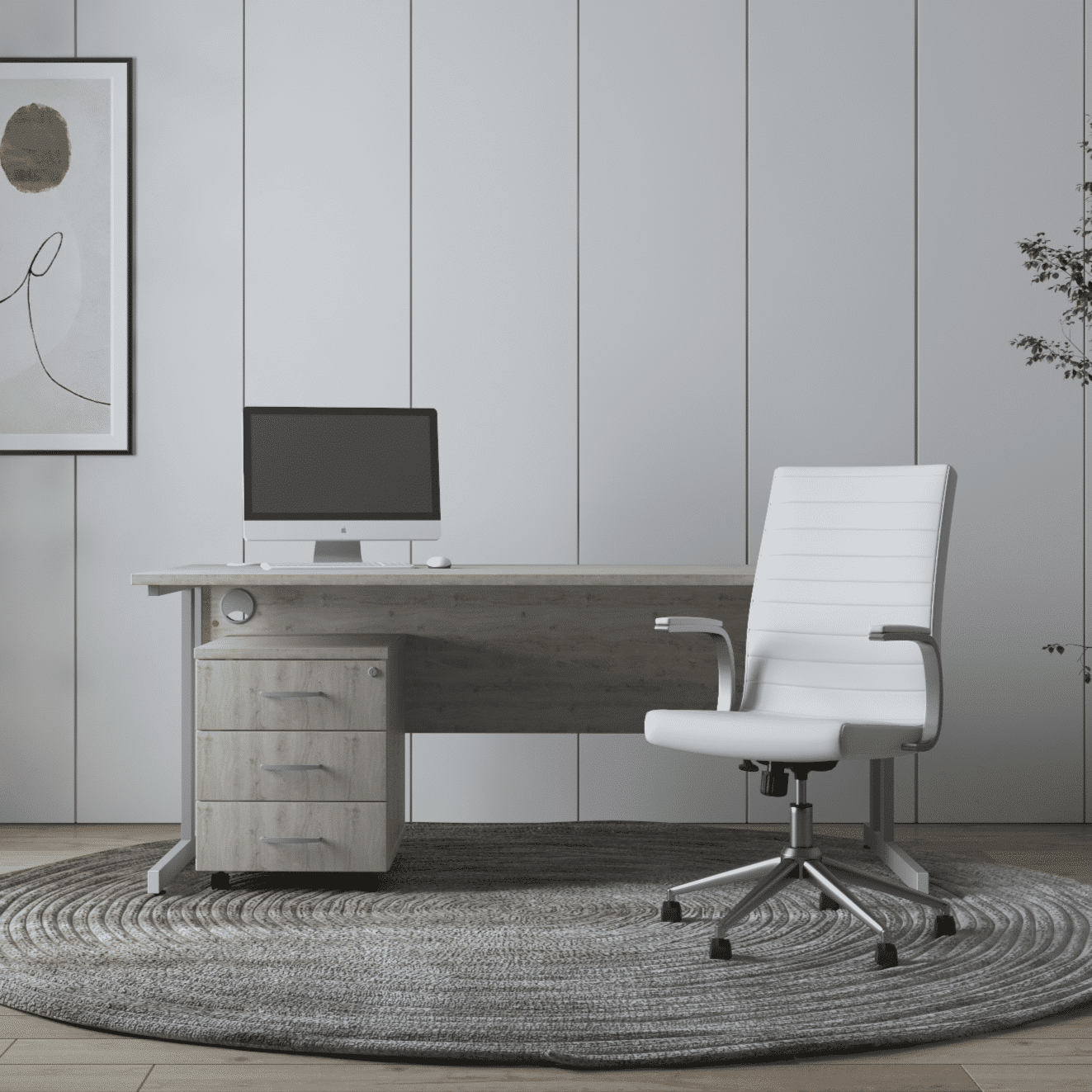 Impulse 1600mm Cantilever Straight Desk With Mobile Pedestal and Ezra White Executive Chair