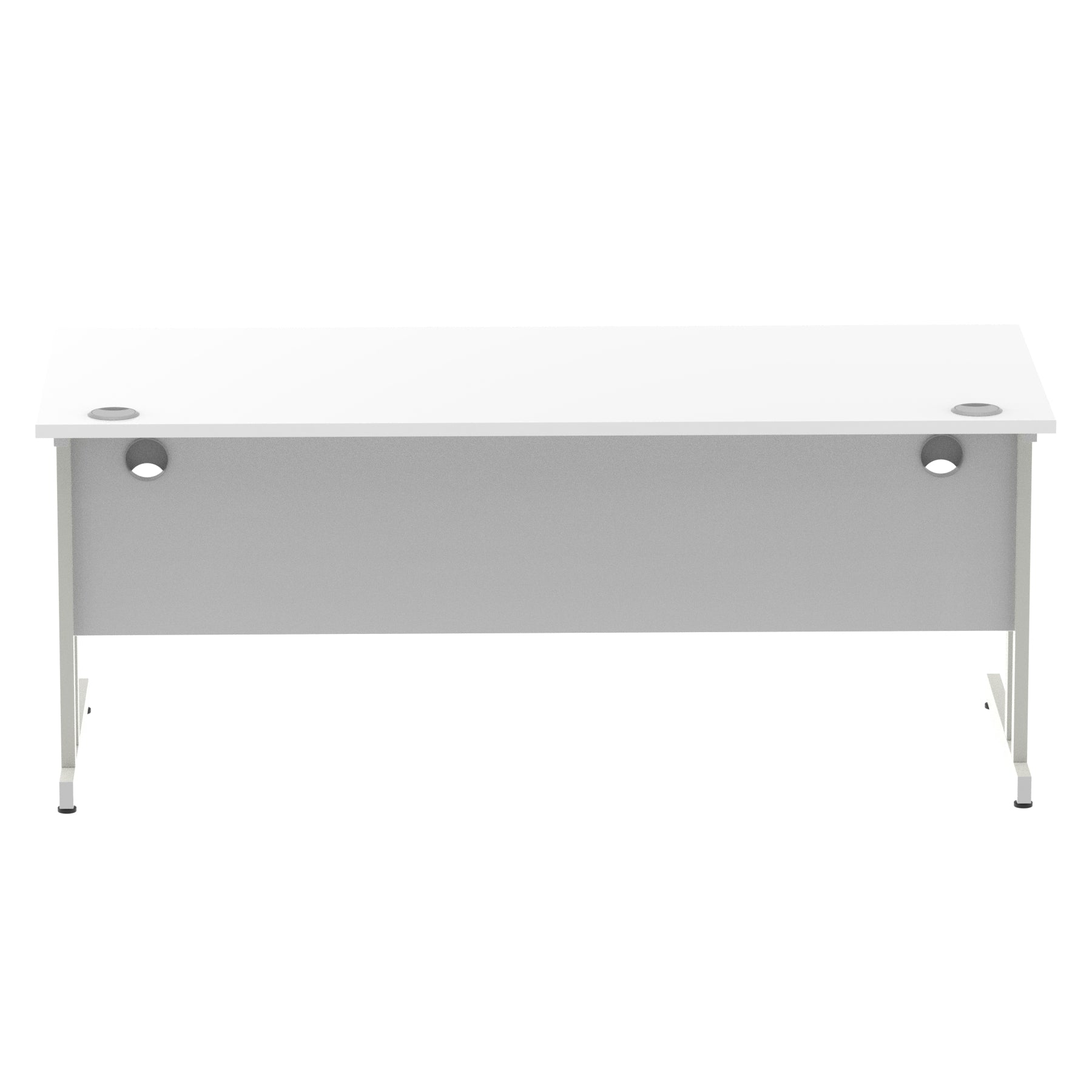 Impulse contract desk | 25mm tops | Heat resistant melamine finish | 18mm modesty panels | 2mm protective abs edging | Double strut legs | 2 cable ports | Height adjustable feet | Steel to steel fixings | 2 modesty panels Ports| Deep set modesty panel (5″) allows for compatibility of most screen clamp fittings | Weight Capacity 135Kg
