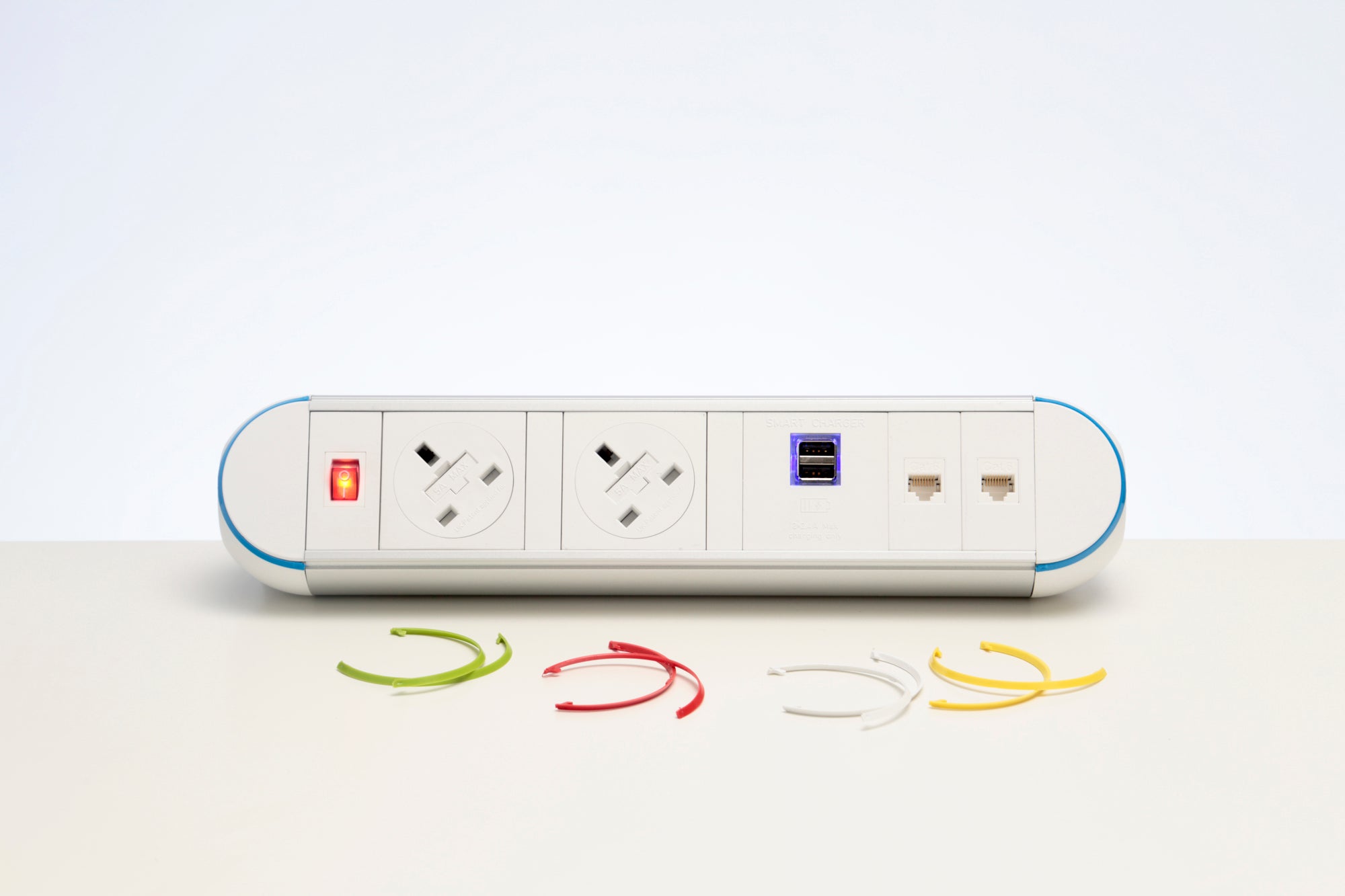 Impulse Desktop Module 2 x 3.15A UK Sockets, 1 x Neon Switch, 1 x 500mm Lead to 3 Pole Connector in Black