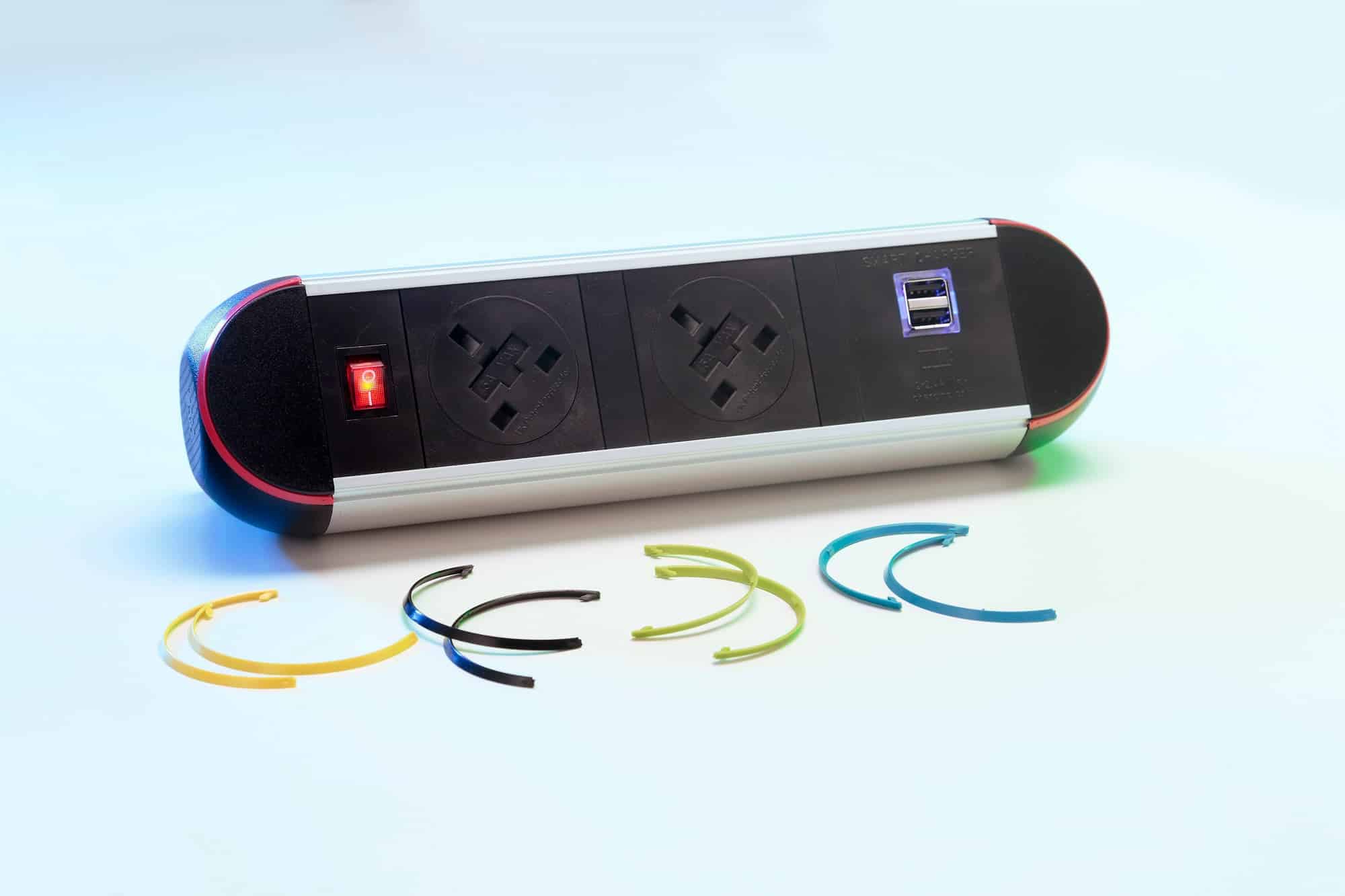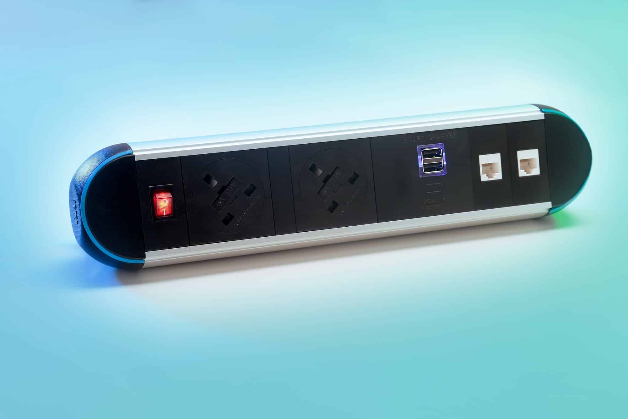 Impulse Desktop Module 2 x 3.15A UK Sockets, 1 x Neon Switch, 1 x 500mm Lead to 3 Pole Connector in White