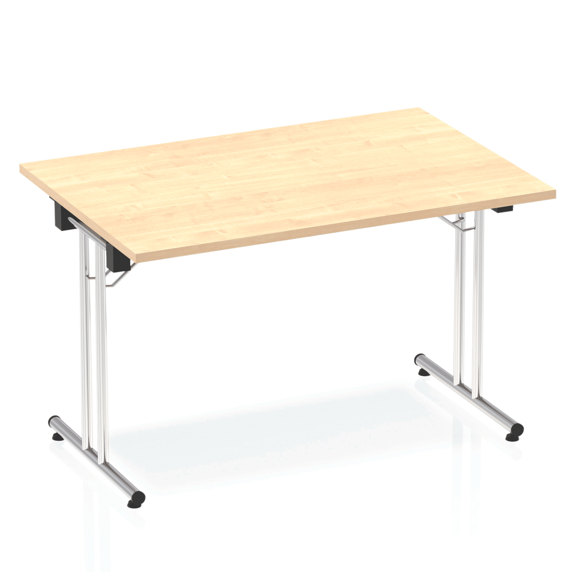 Impulse freestanding meeting table | Classic rectangular shape |Table folds easily for space efficient storage | Provides excellent team working environment | 25mm thick top | Attractive silver coated leg | 2mm abs protective edging | Heat resistant beech melamine finish | Steel to steel fittings | Weight Capacity 135Kg