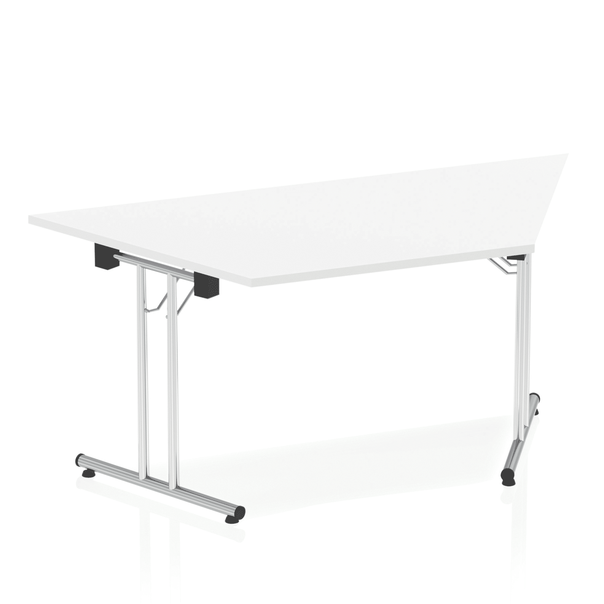 Impulse freestanding meeting table | Trapezoidal shape for groups of tables | Table folds easily for space efficient storage | Provides excellent team working environment | Slanted sides measure 800mm from corner to corner | 25mm thick top | Attractive silver coated leg | 2mm abs protective edging | Heat resistant beech melamine finish | Steel to steel fittings | Weight Capacity 100Kg