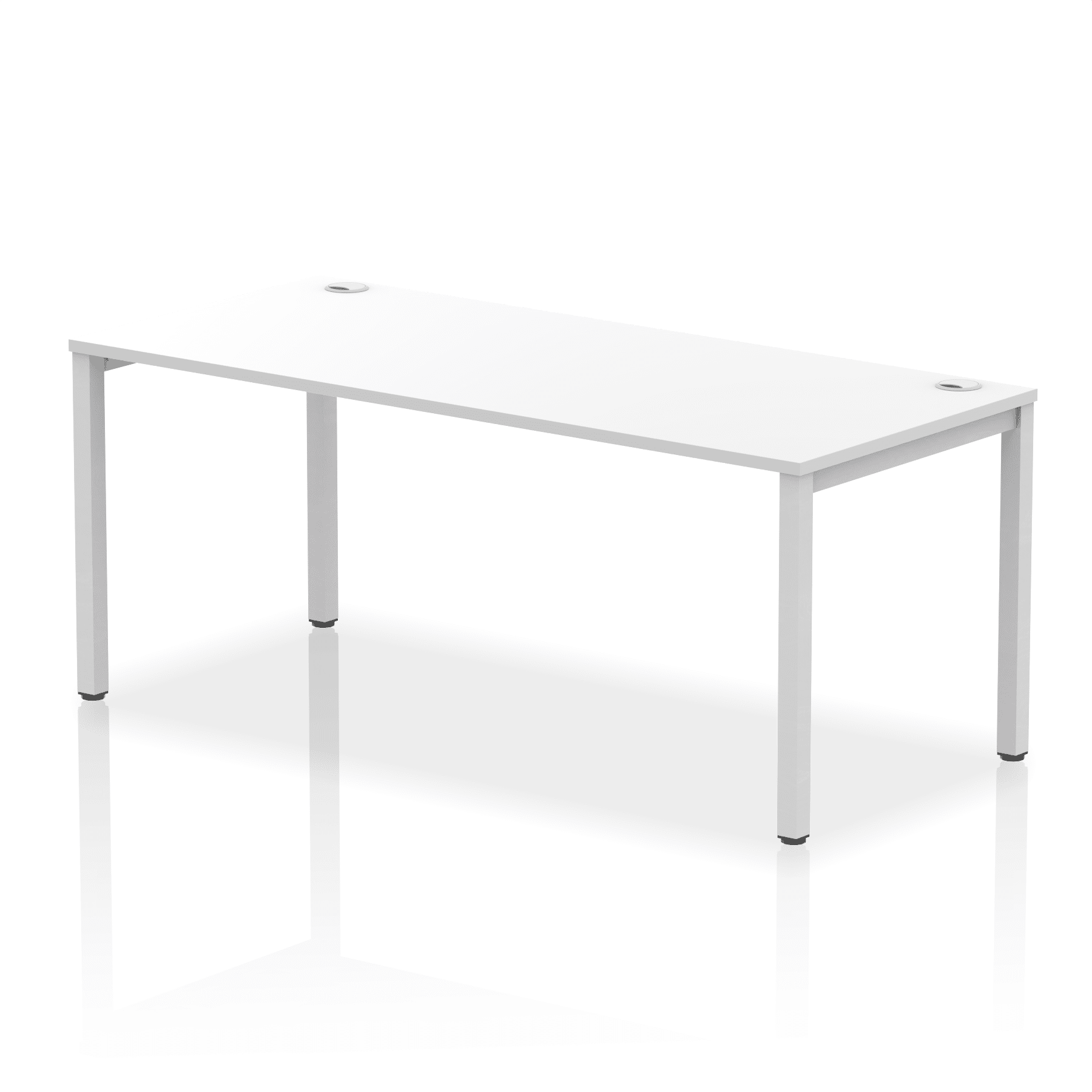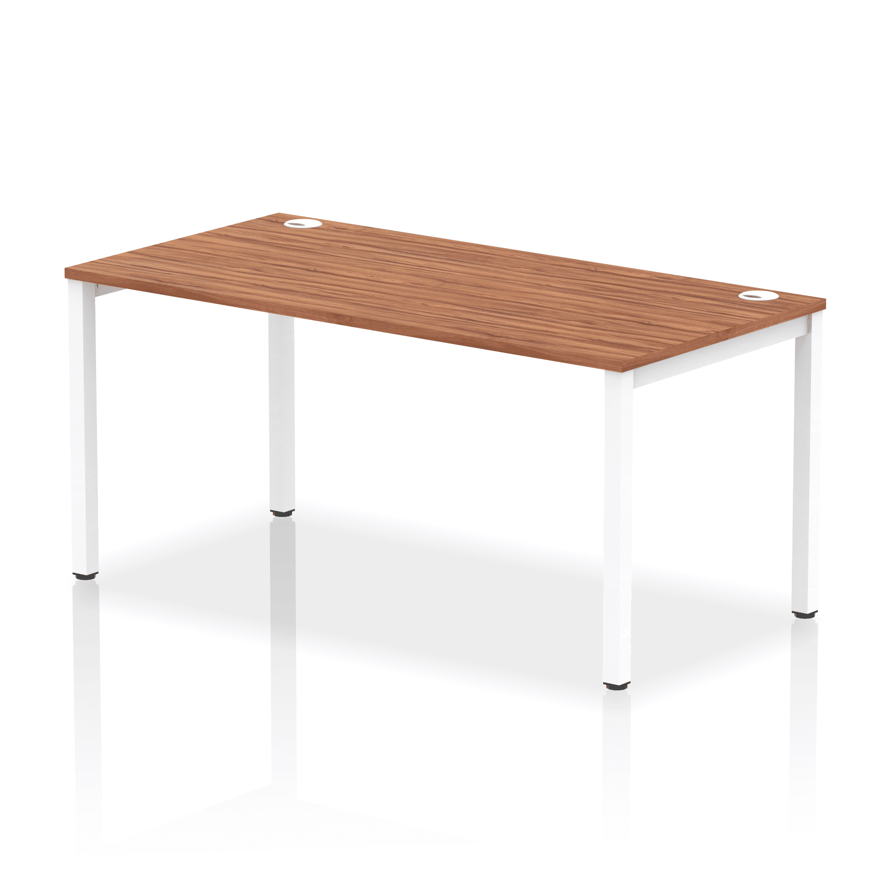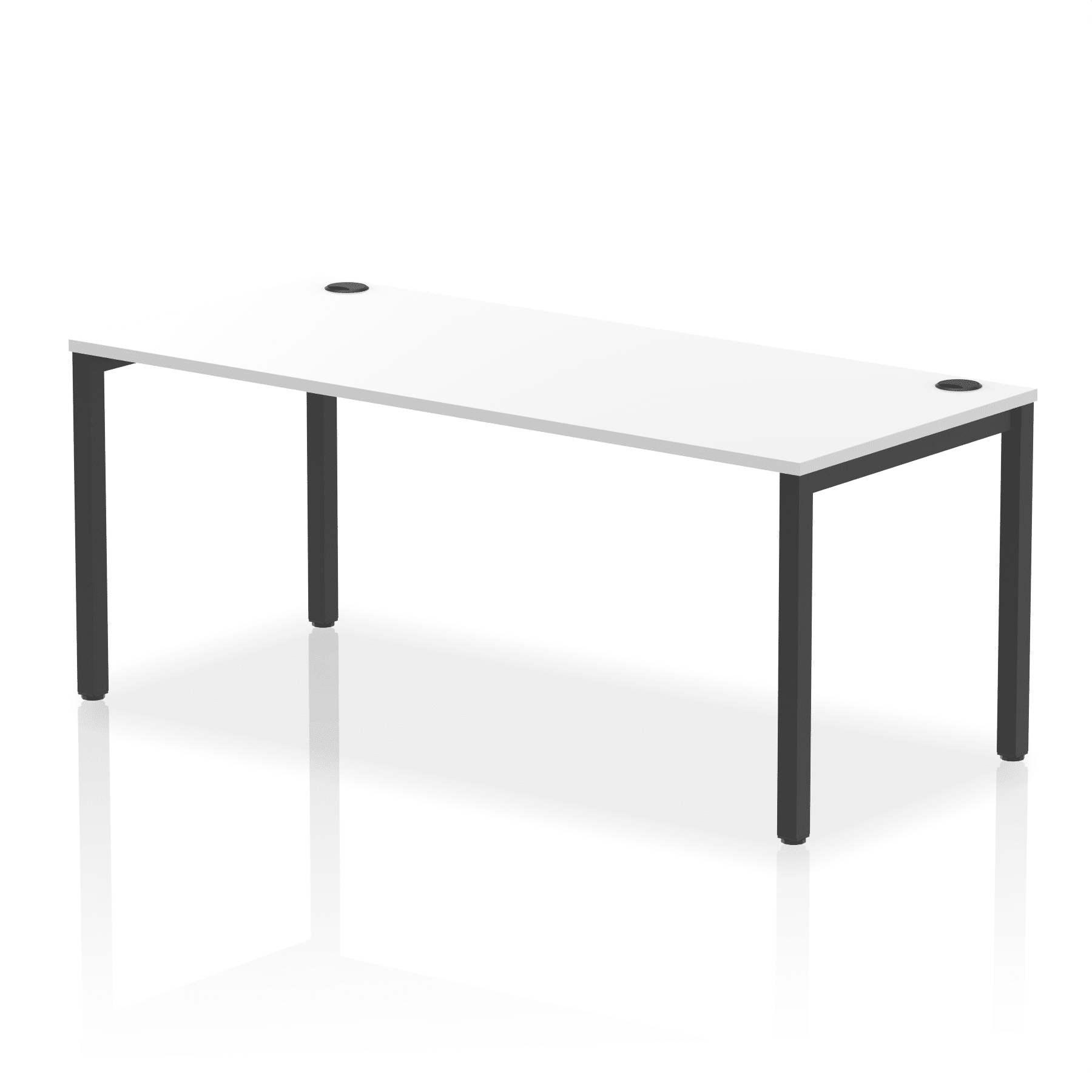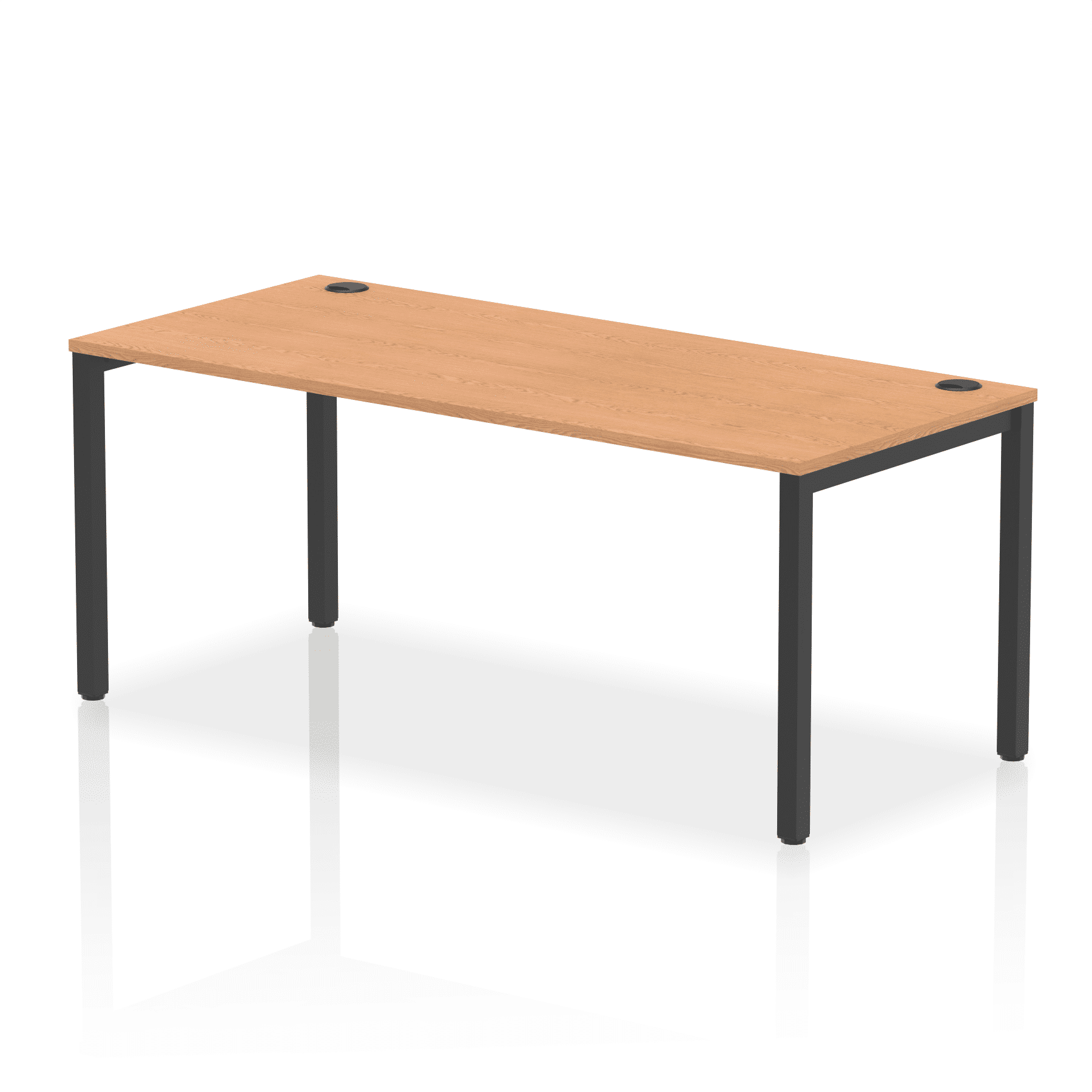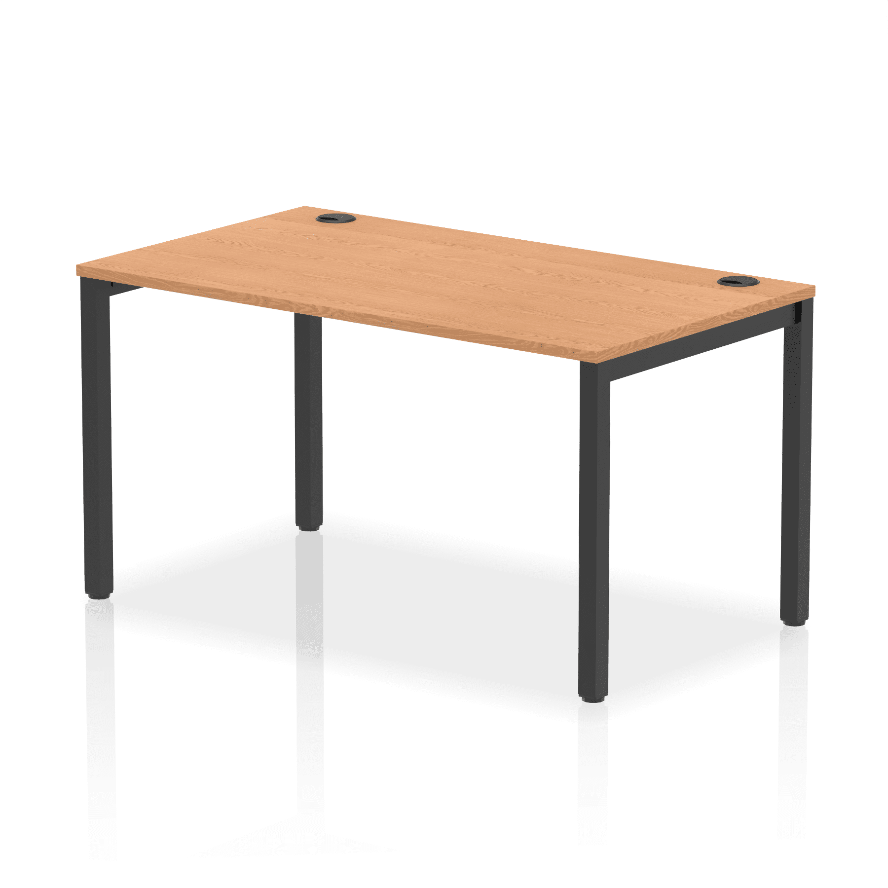 • Conjoinable frame system allows for easy adaptability • Stylish powder coated goal post leg design • Double cable ports for easy cable management • 25mm thick tops with 2mm protective edging • Adjustable Feet • Choice of 7 wood finishes and 3 leg colours • Weight Capacity: 100kg per user