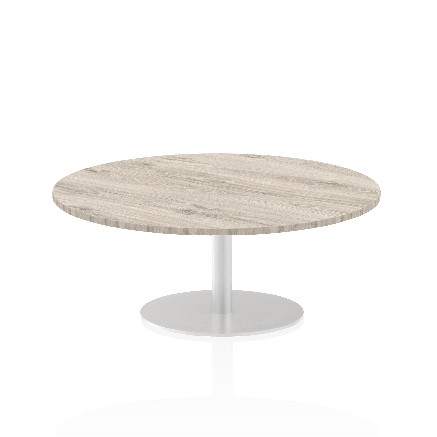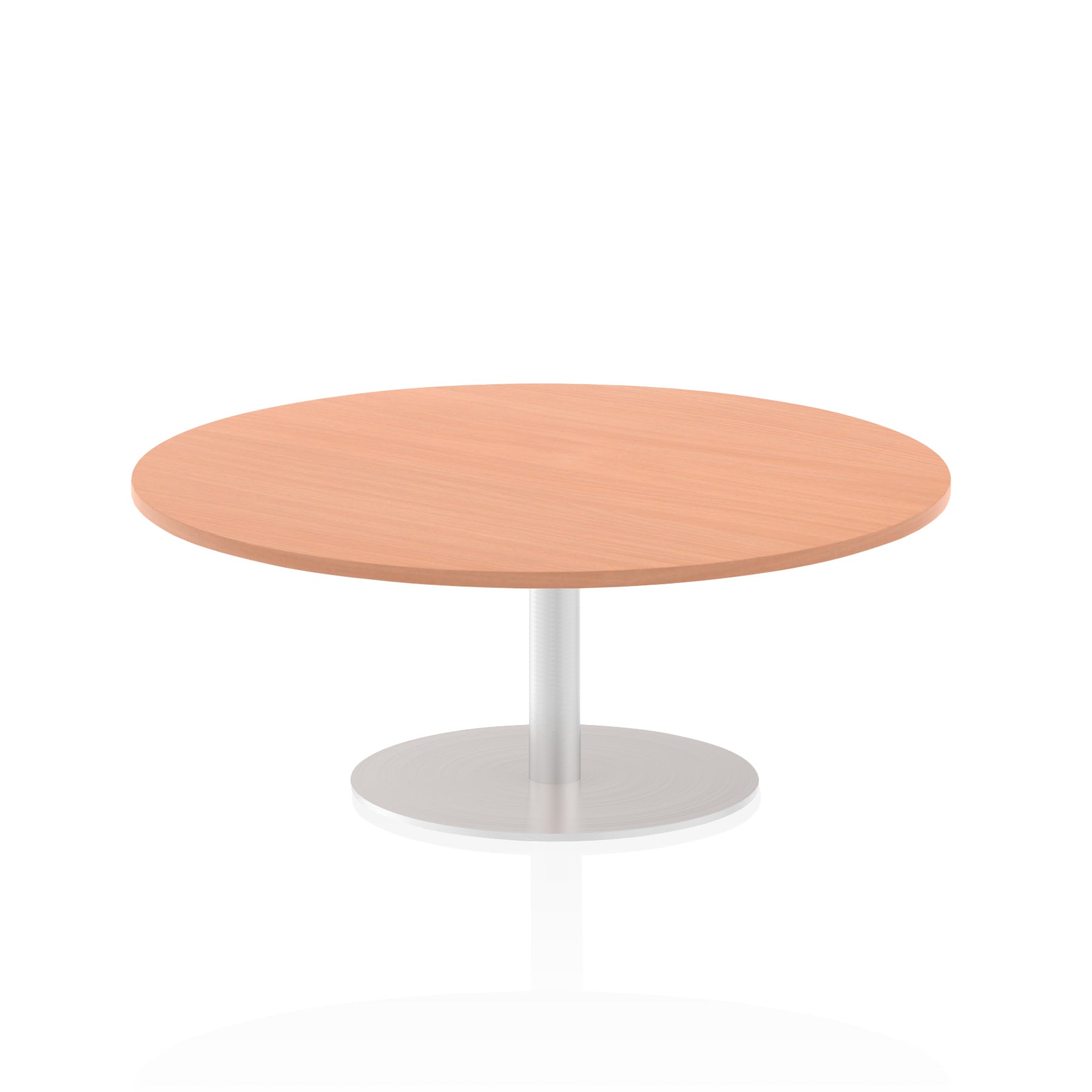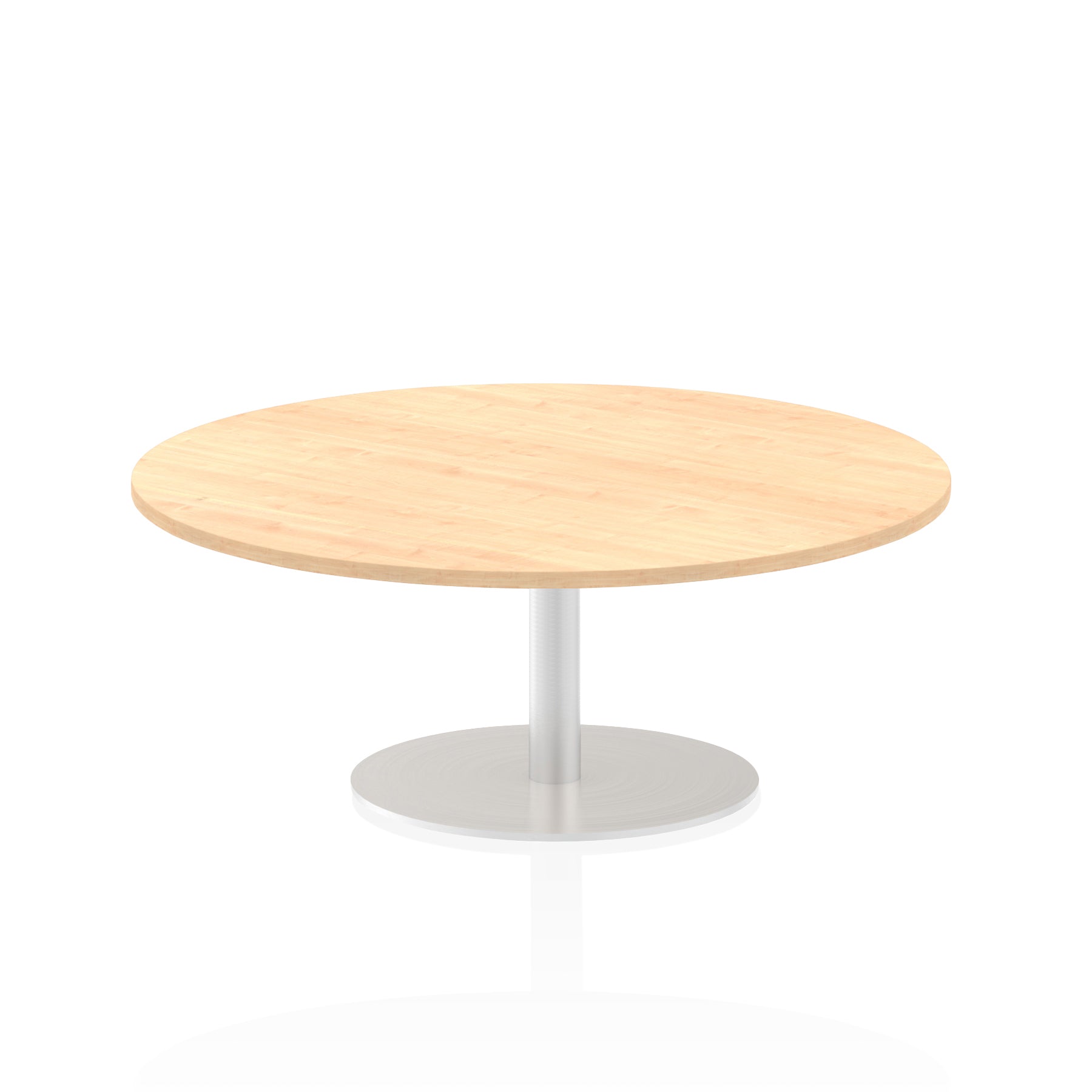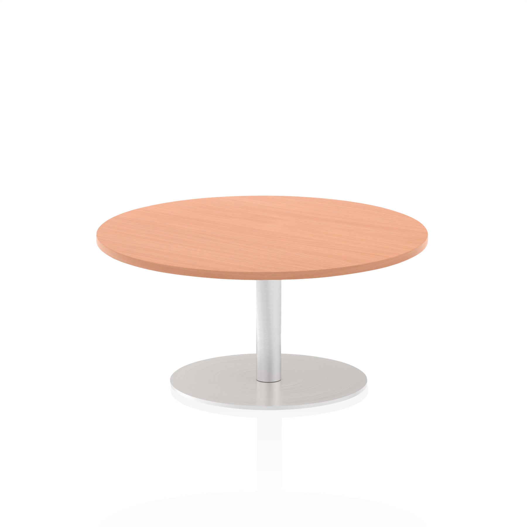 25mm thick desk top profile | Brushed stainless steel effect circular base (580mm diameter) | Brushed stainless steel pillars (76mm diameter) | Weighted base provides stability | Two part bolted frame system