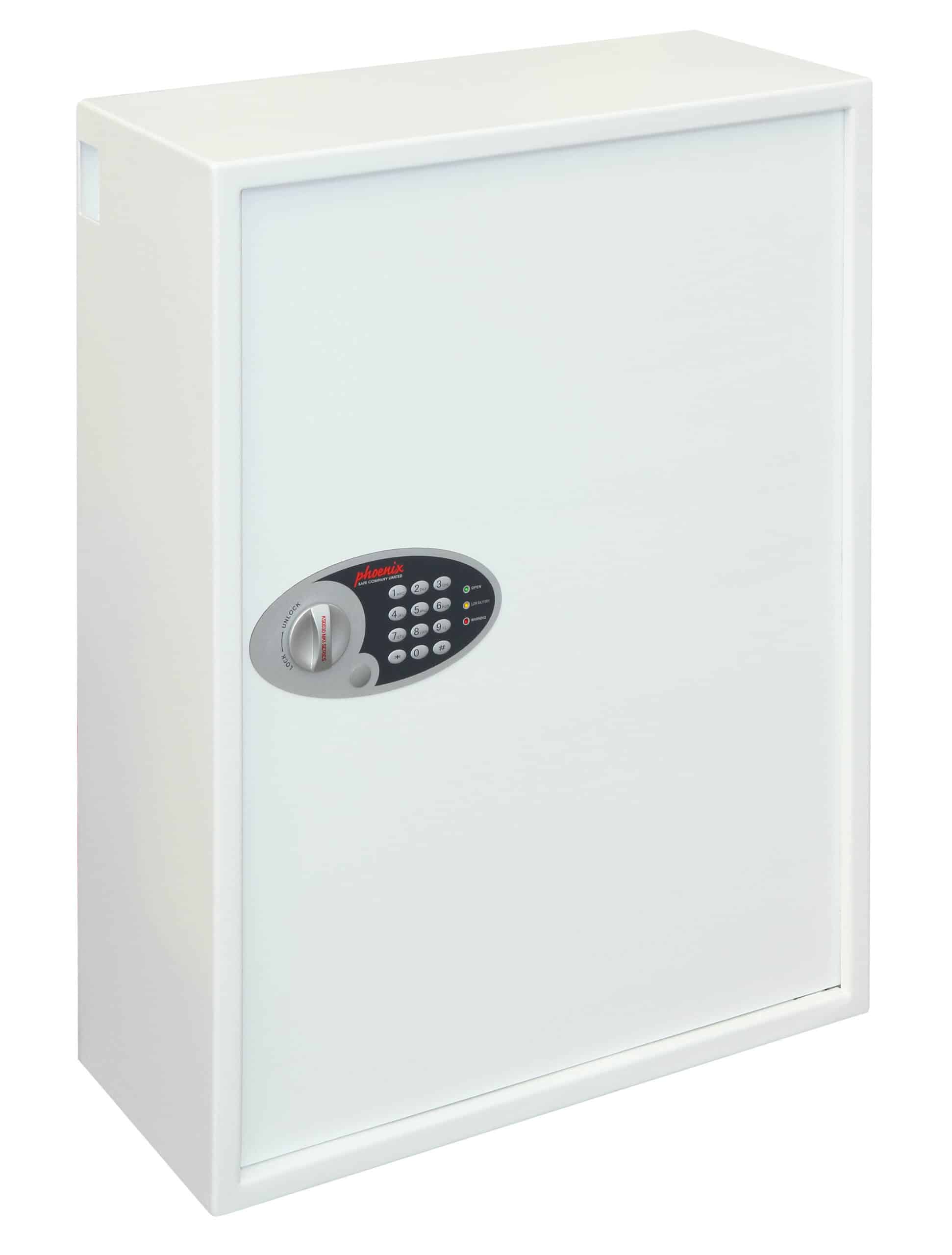 NO OF KEY HOOKS – 30, 48, 144, 300, 500 or 700 | LOCKING – Fitted with an advanced ‘user friendly’ electronic locking with anti-tamper or bounce solenoid locking System. For added peace of mind these safes are fitted with a key override facility should the code be misplaced (2 Keys supplied). | SECURITY – When bolted to a wall these key Safes provide defence against burglaries aimed at stealing car keys, house keys, office keys etc | FIXING – Ready prepared for fixing to the wall with bolts supplied | SPECIAL FEATURES – A unique key deposit slot allows keys to be deposited without the need to open the safe | DEPOSIT SLOT – 55H x 35W x 15Dmm | KEY TAGS – Supplied complete with a selection of coloured key rings | COLOUR – Finished in a high quality scratch resistant paint RAL9003 White.